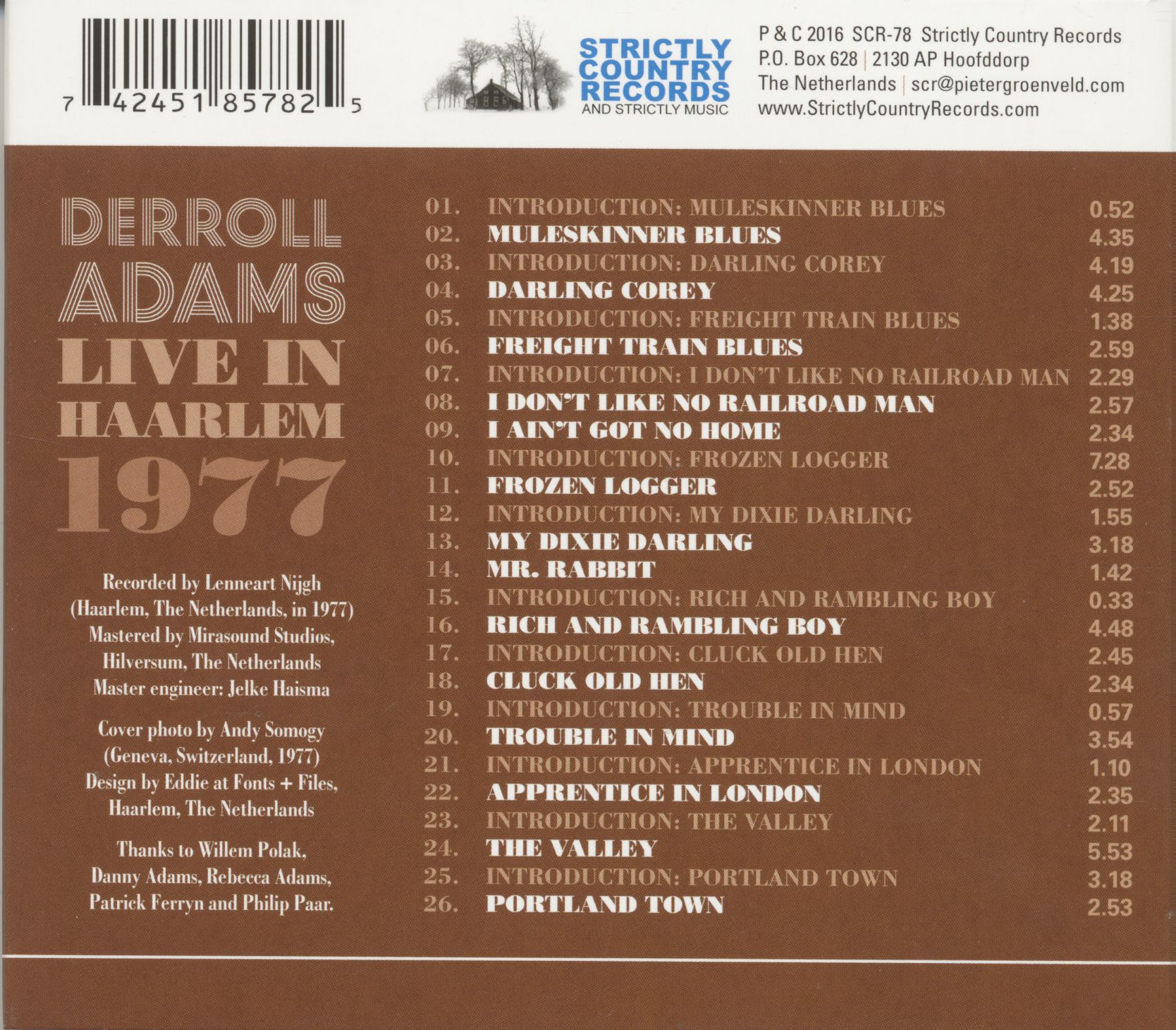 | Adams, Derroll - Live in Haarlem 1977 (CD) CD 1 | ||||