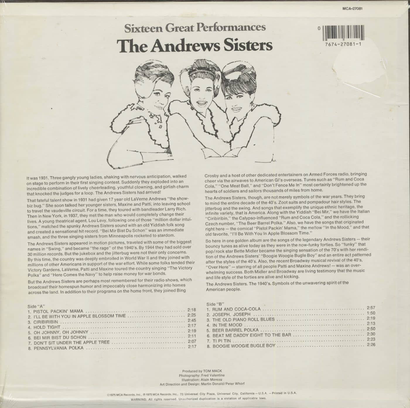 The Andrews Sisters 16 Great Performances (LP)