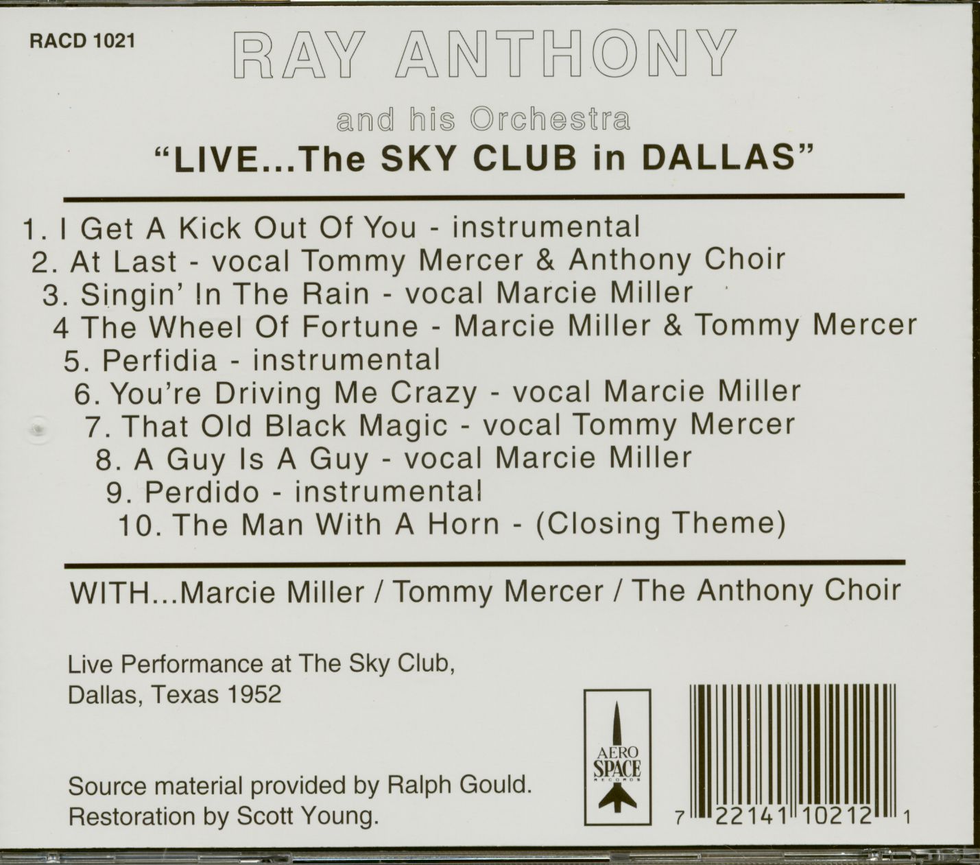 Ray Anthony & His Orchestra Live - The Sky Club In Dallas (CD)