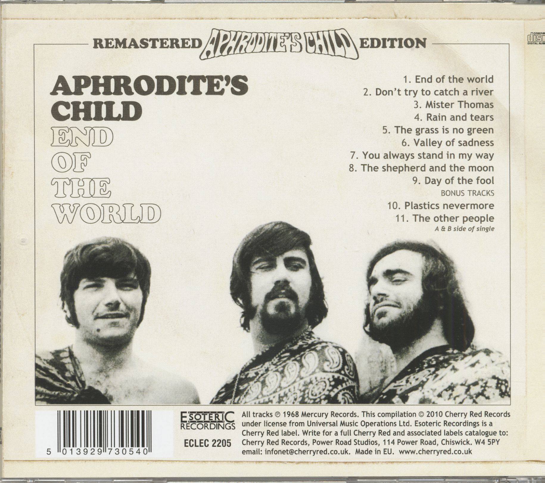 Cependant, l'album révélait également une facette plus expérimentale du groupe avec des joyaux psychédéliques tels que « The Grass is No Green », « You Always Stand in My Way » et « Day of the Fool ». Cette réédition d'Esoteric Recordings a été remasterisée à partir des bandes originales et comprend les deux faces du premier single d'Aphrodite's Child en tant que titres bonus.