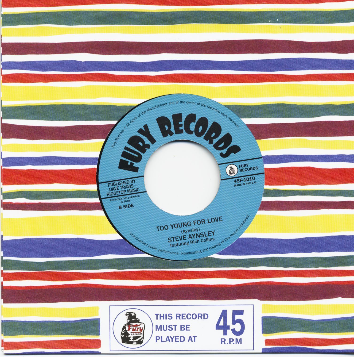 Steve Aynsley Hard Time Gettin' Home - Too Young For Love (7inch, 45rpm)