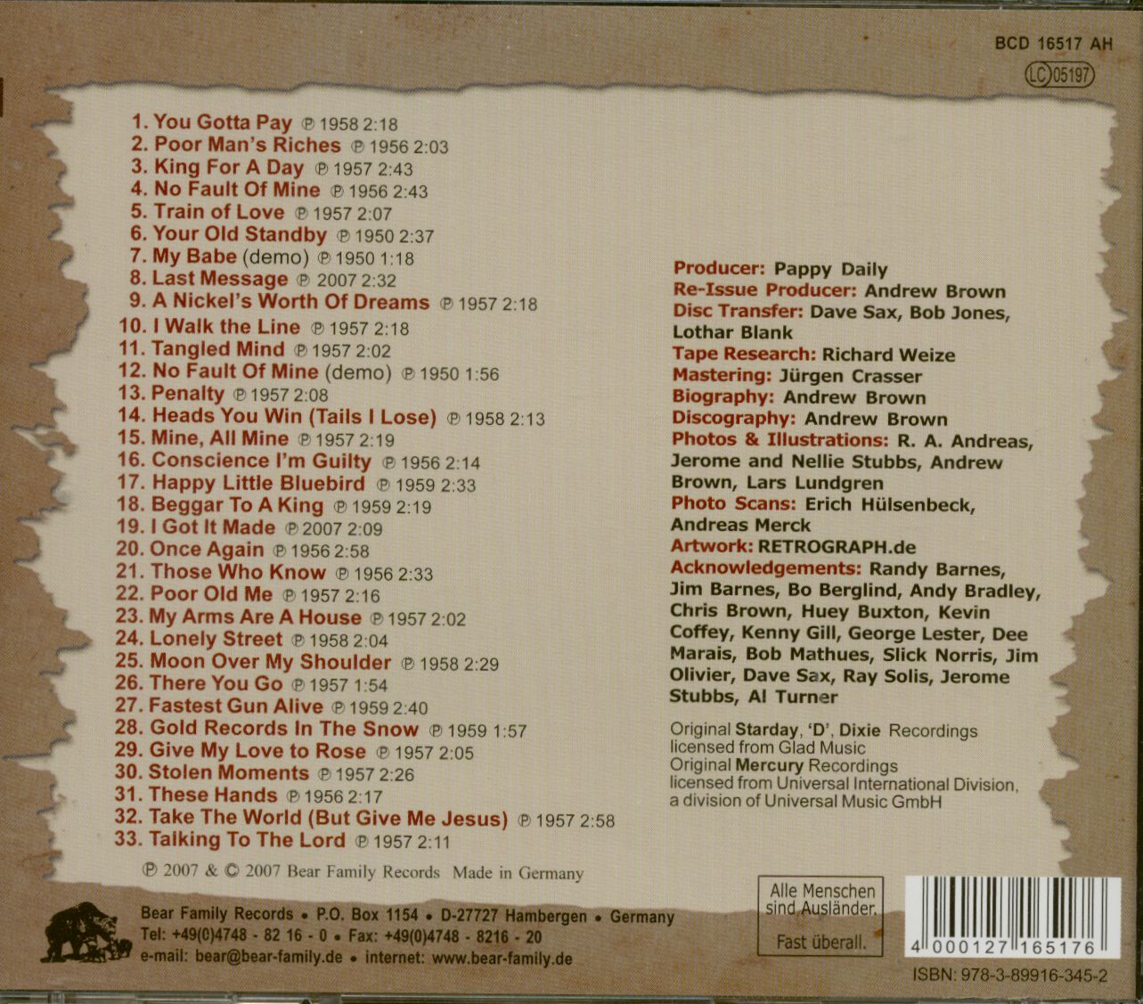 | Barnes, Benny - Poor Man's Riches - Complete 1950s Recordings (CD) CD 1 | ||||