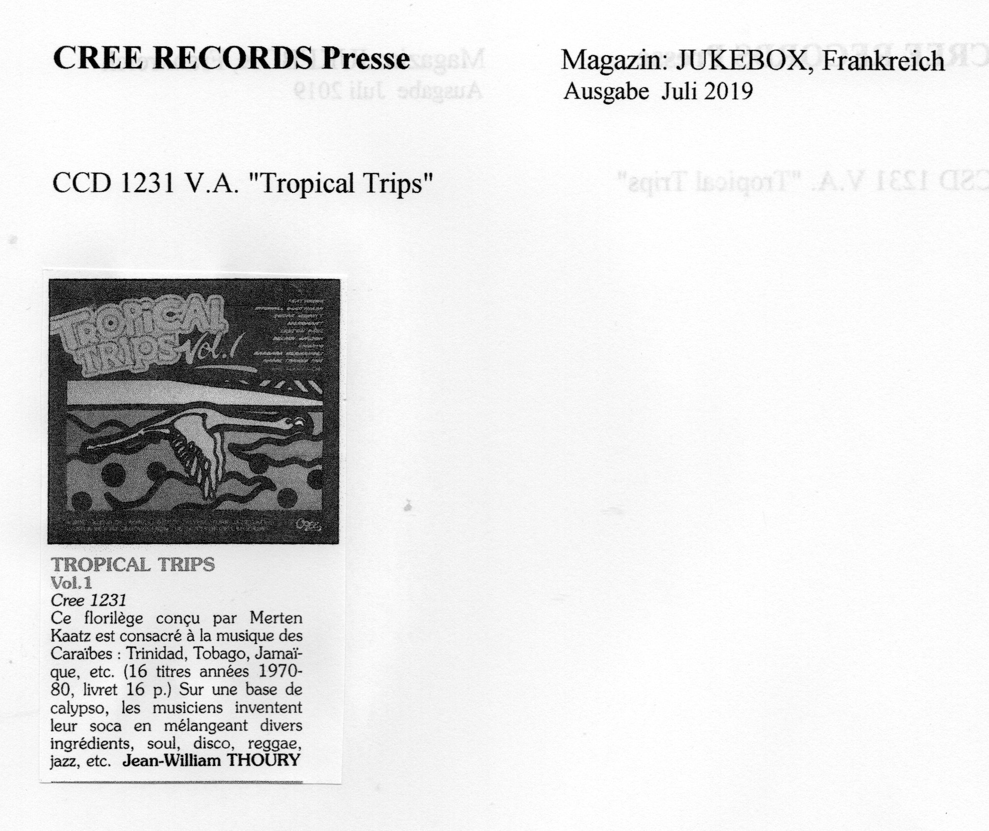 CREE RECORDS Presse CCD 1231 V.A. "Tropical Trips"