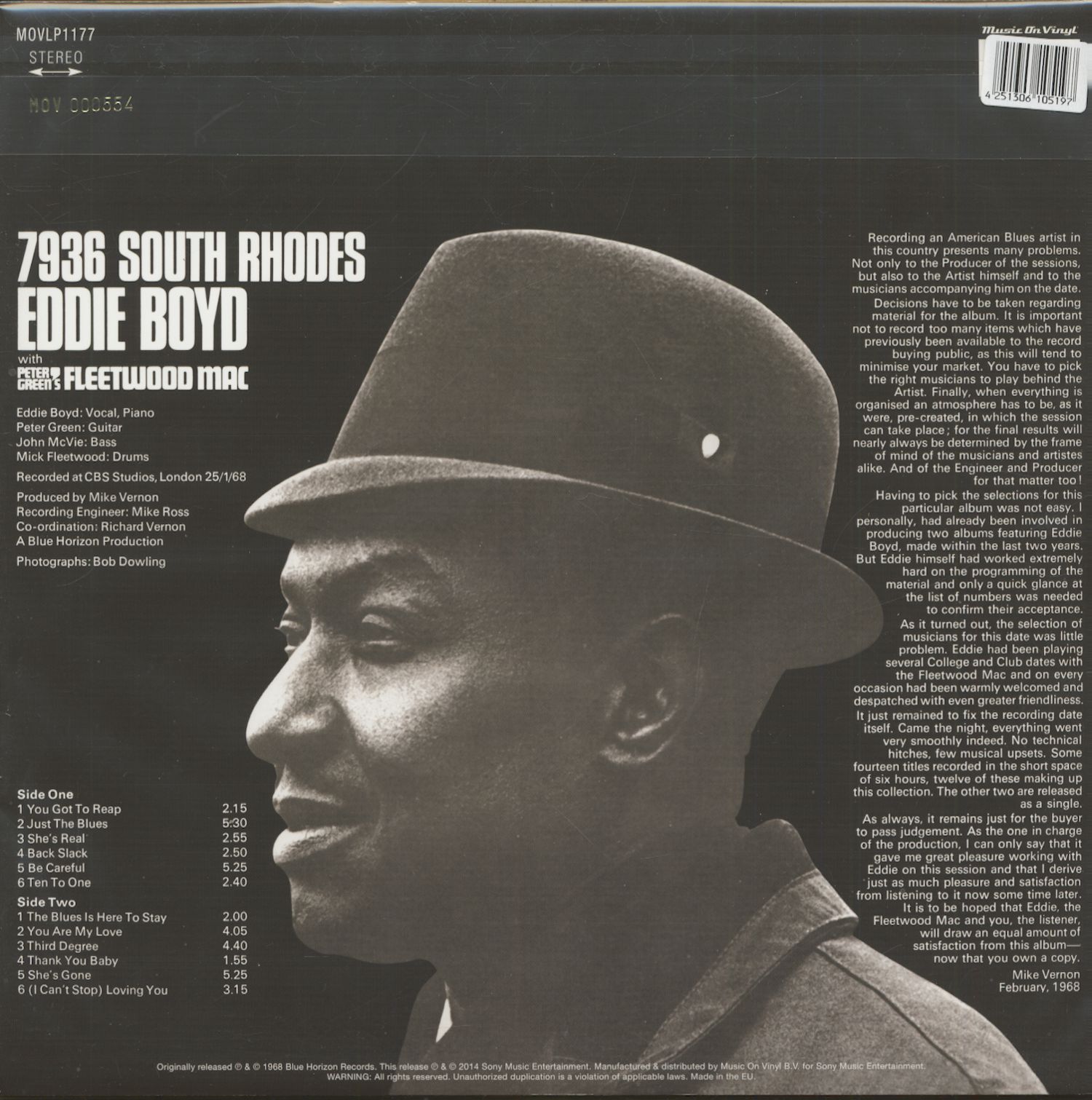 Eddie Boyd with Fleetwood Mac 7936 South Rhodes (LP, 180g Vinyl)