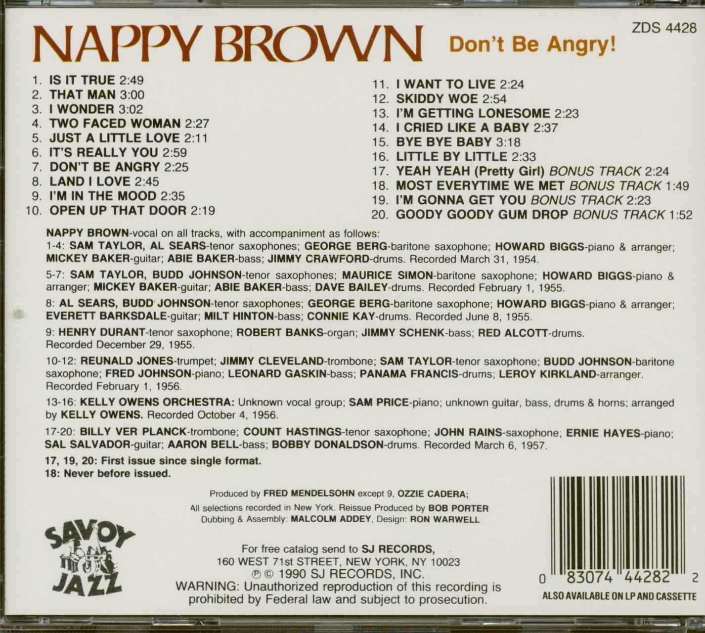 Nappy Brown Don't Be Angry (CD)