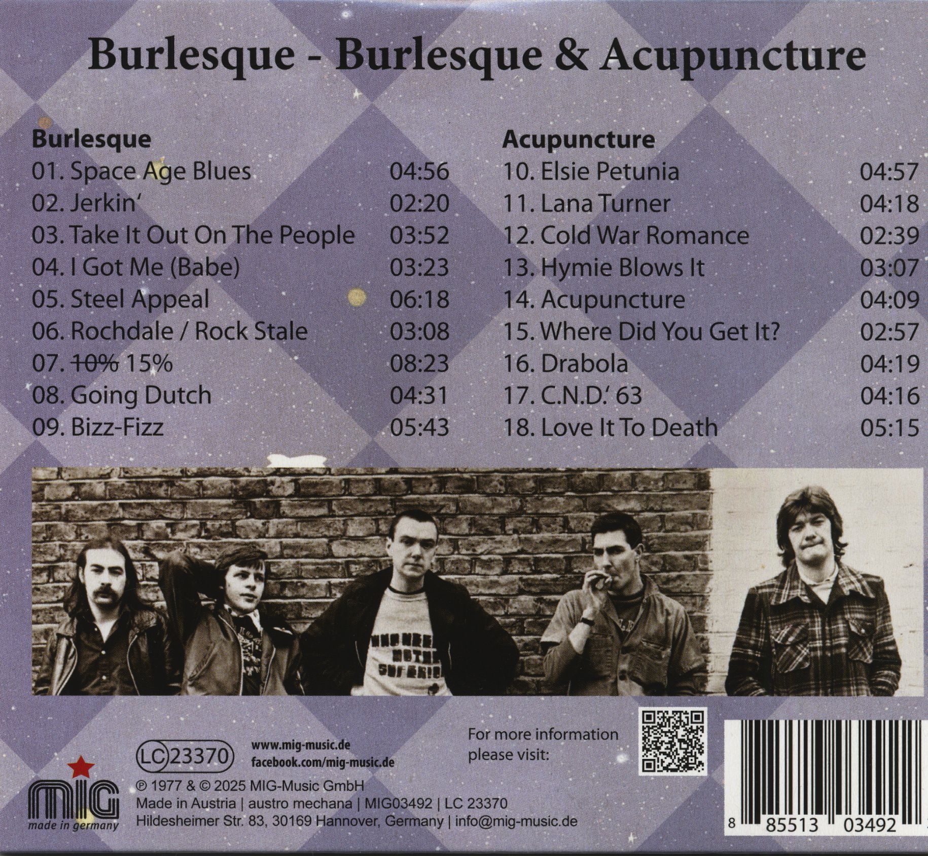 les Kursaal Flyers et Be Bop Deluxe. L'album studio « Burlesque », produit par George Haslam, a suivi la même année. Malgré des critiques positives, le groupe s'est séparé peu après. Grâce à cette réédition, les deux albums sont désormais accessibles à un nouveau public : un morceau de l'histoire de la musique britannique qui était depuis longtemps difficile à obtenir.