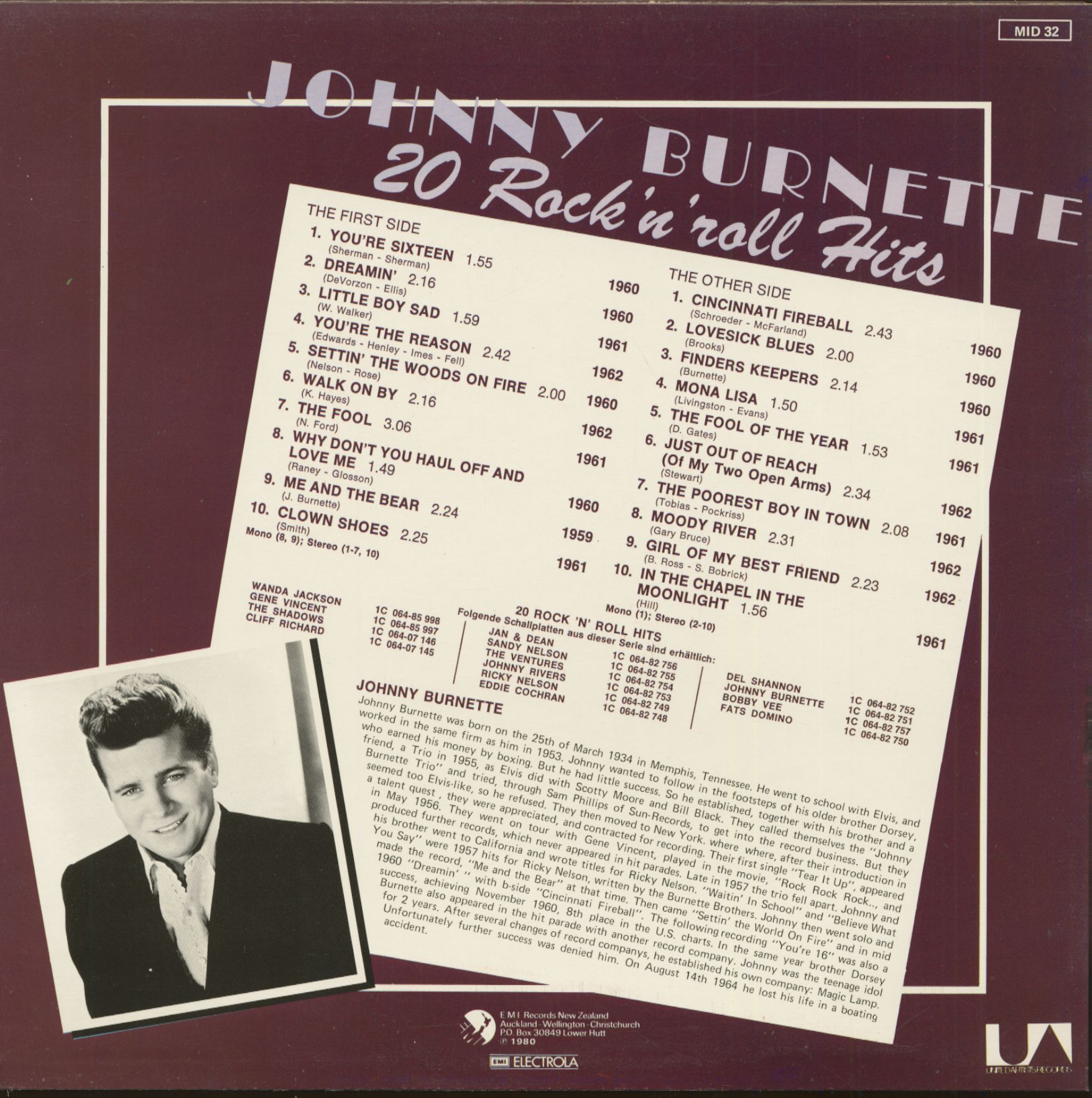 Johnny Burnette 20 Rock & Roll Hits - Vinyl LP (New Zealand)
