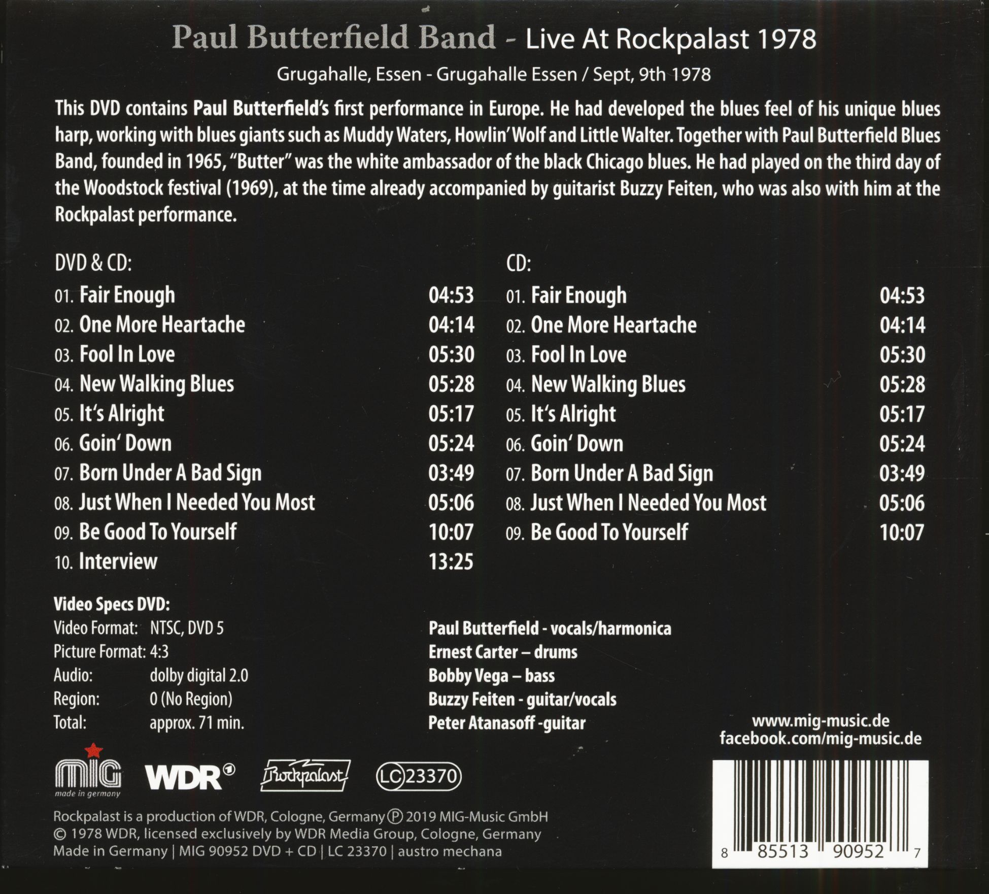 Paul Butterfield Band Live At Rockpalast 1978 (CD & DVD)