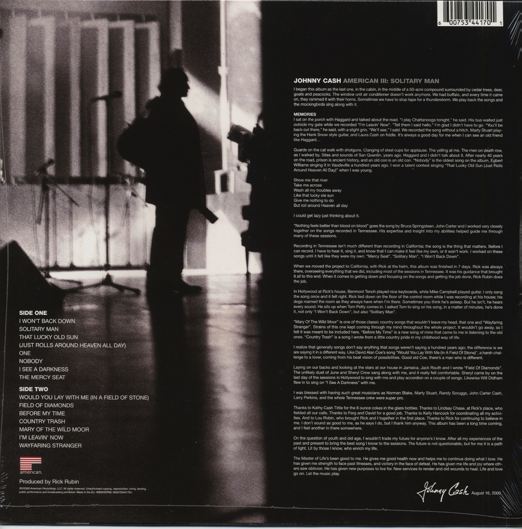 Johnny Cash American Recordings III - Solitary Man (LP, 180g Vinyl)