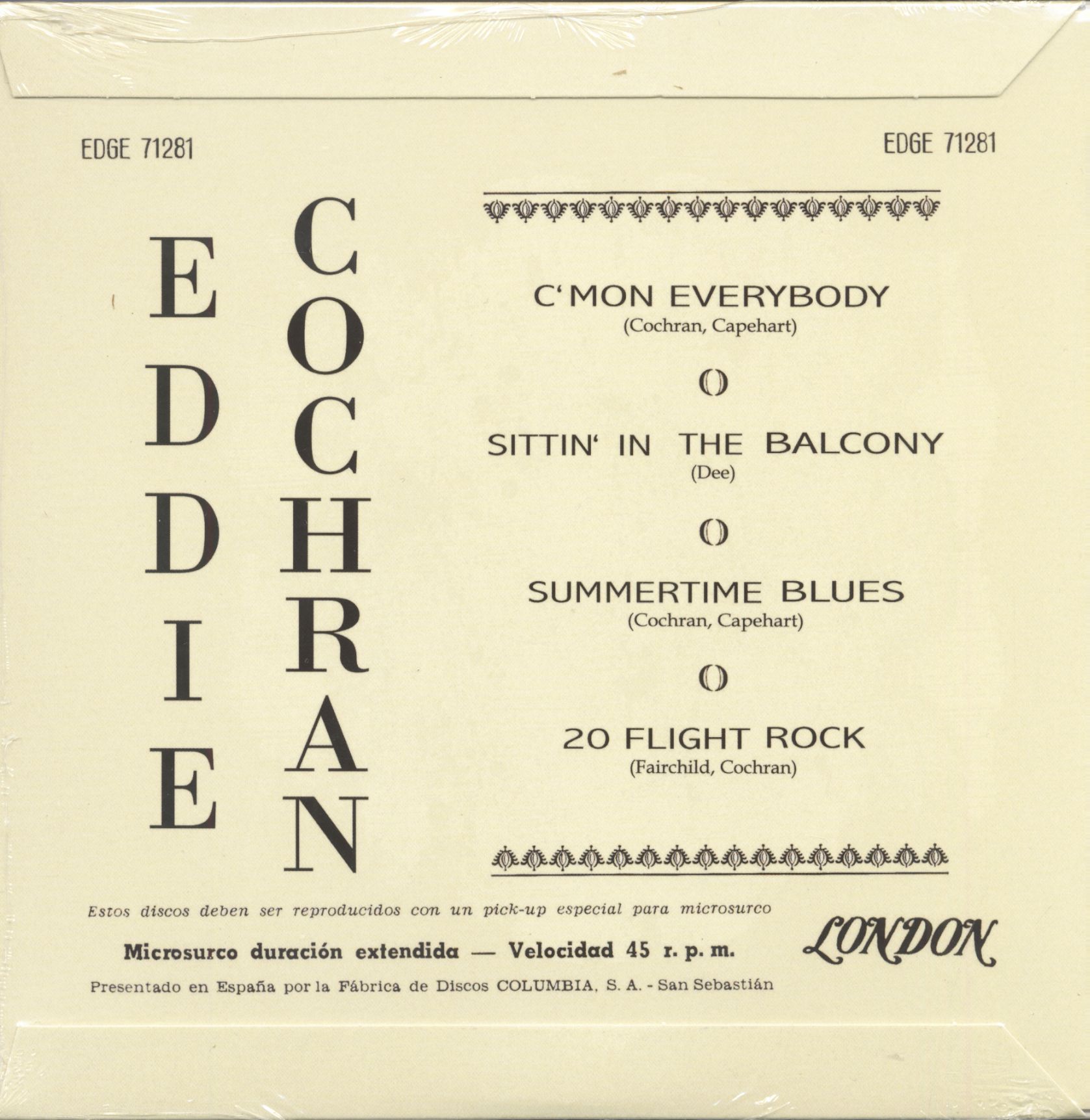 Eddie Cochran C'mon Everybody - Sittin' In The Balcony - Summertime Blues - 20 Flight Rock (7inch, 45rpm, EP)