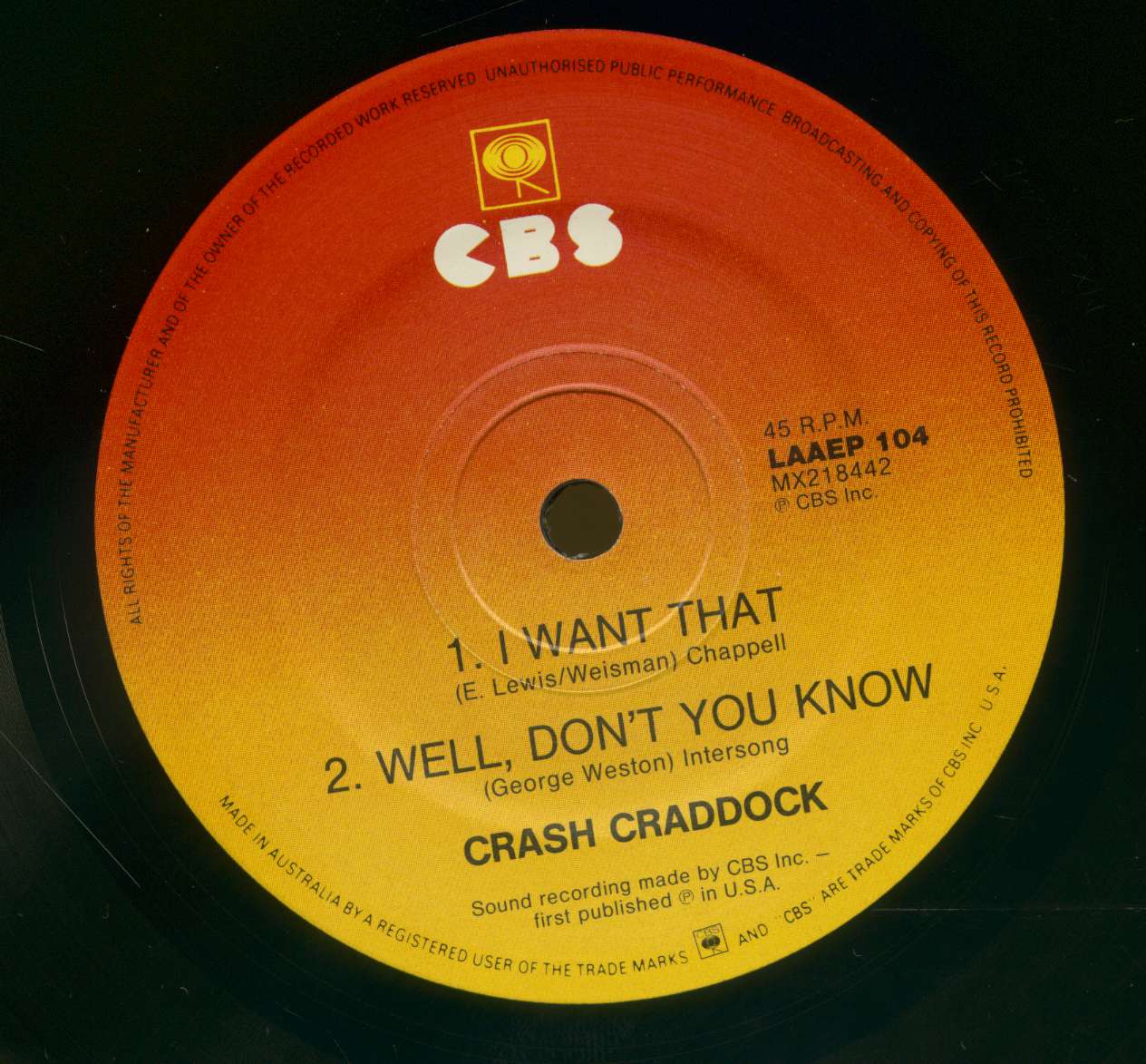Manufactured in Australia under licence from CBS Records Australia Limited. Selected and Compiled by Discontinued Records.