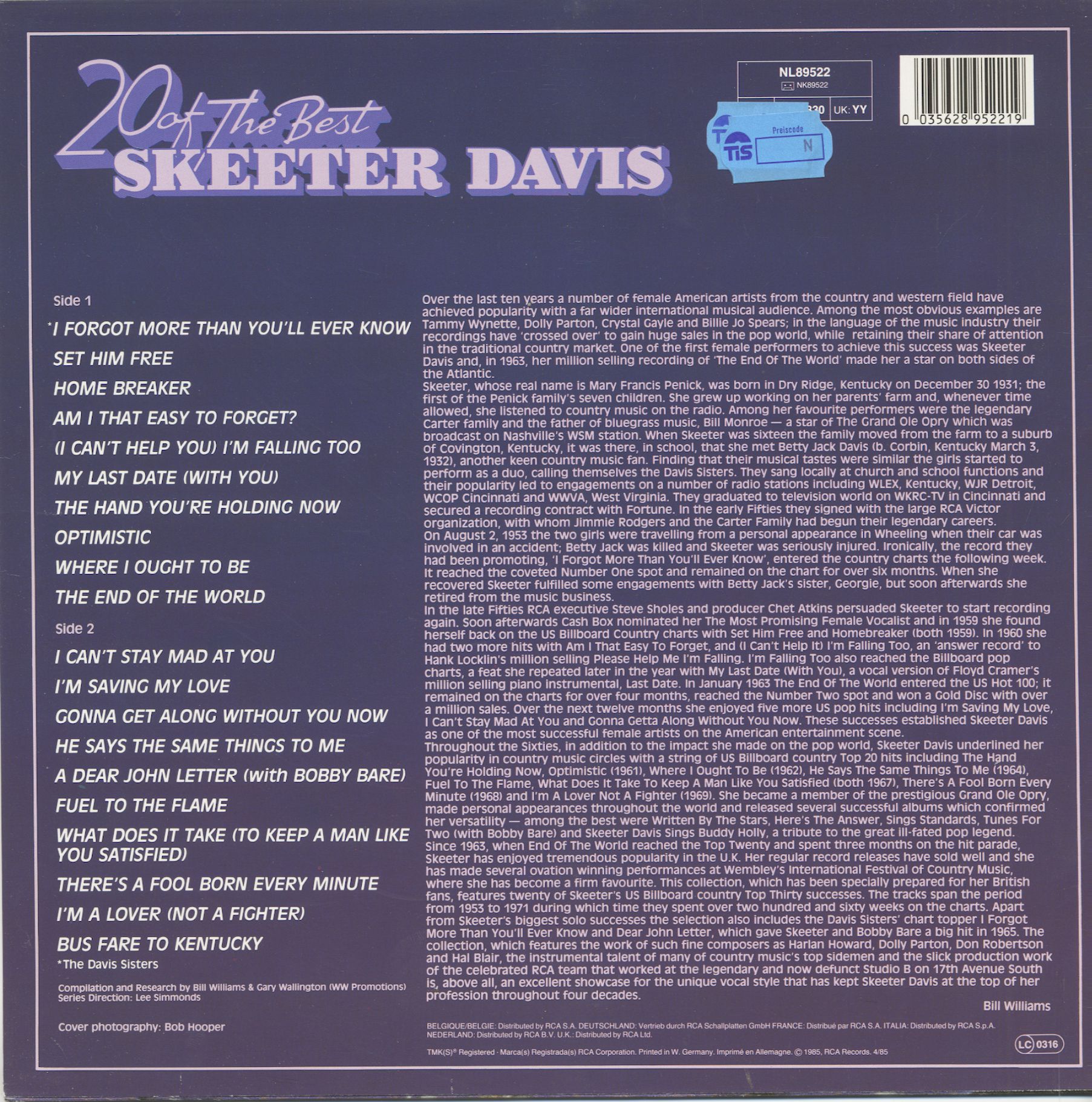 | Davis, Skeeter - 20 Of The Best (LP) LP 1 | ||||