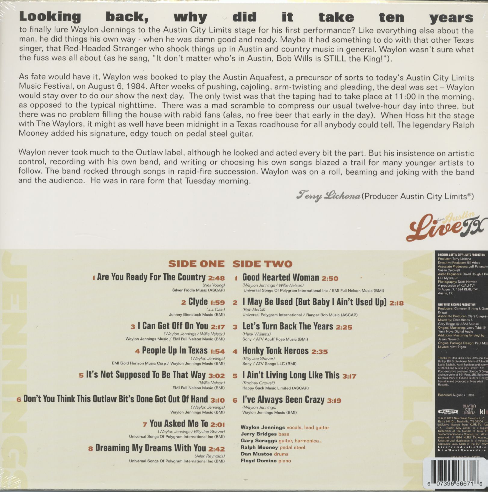 Waylon Jennings Live From Austin TX '84 (LP, colored Vinyl, Ltd.)