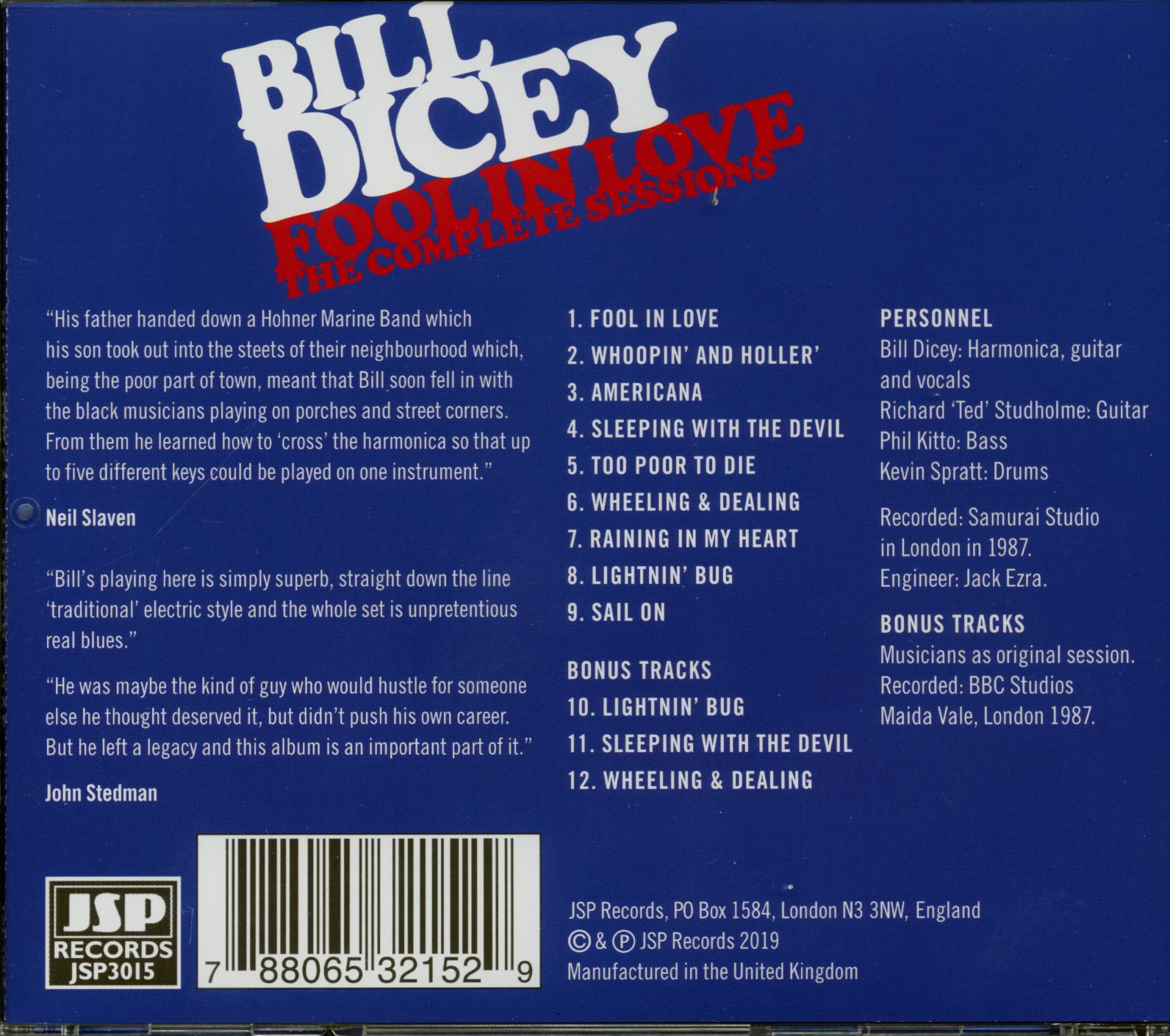 | Dicey, Bill - Fool In Love - The Complete Sessions (CD) CD 1 | ||||