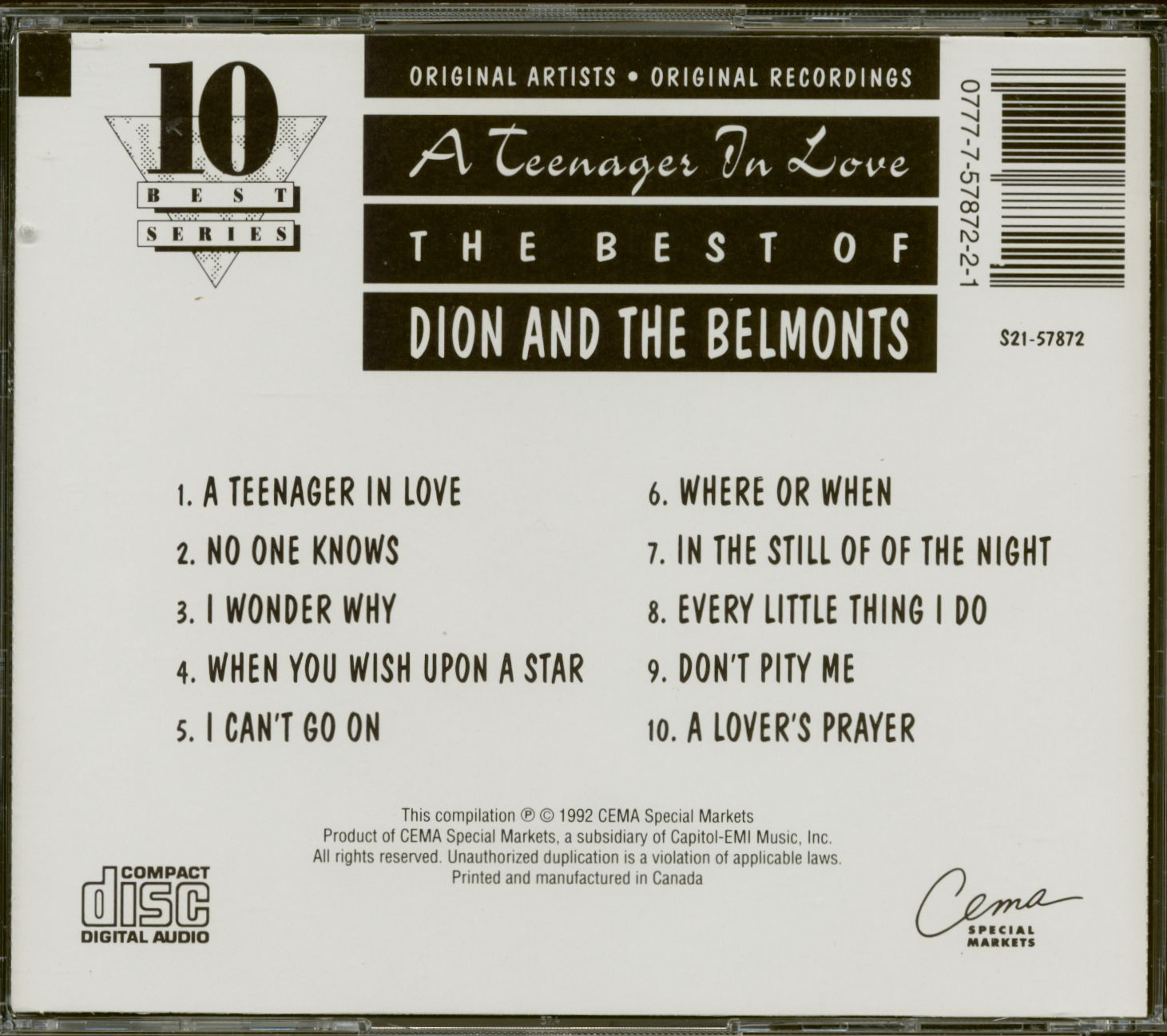 Dion And The Belmonts Teenager In Love (CD)