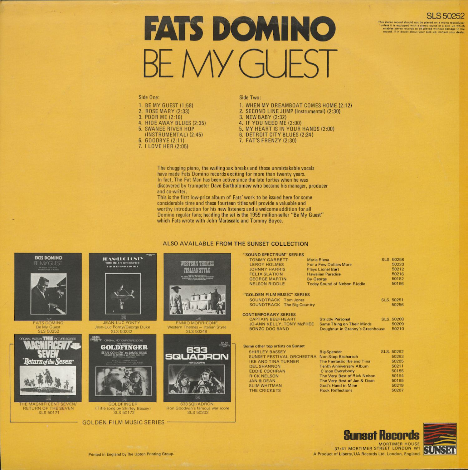 Fats Domino Be My Guest (LP)