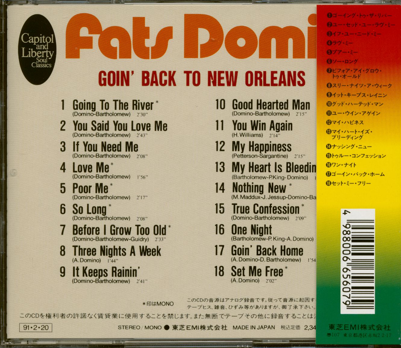 Fats Domino Goin' Back To New Orleans - Capitol and Liberty Soul Classics Series (CD, Japan)