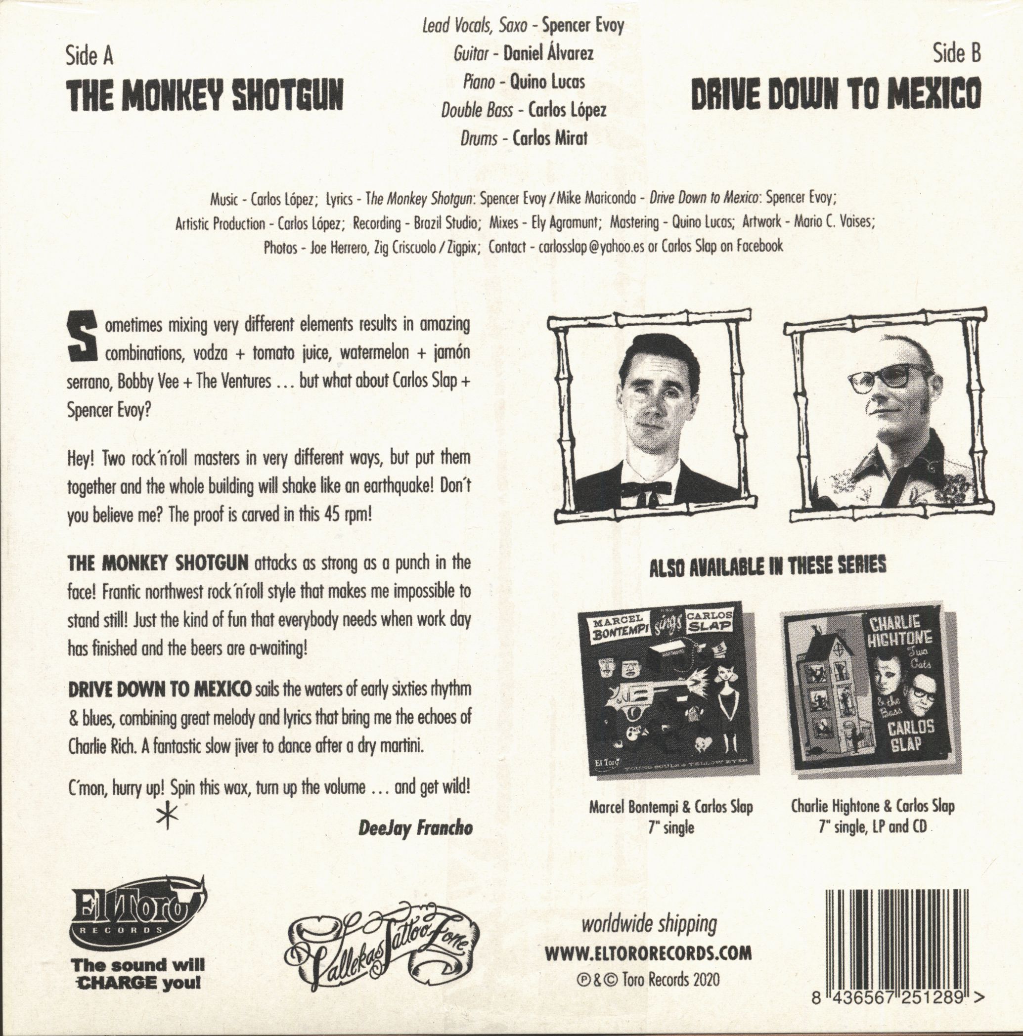 Propriétés de l'article: Spencer 'Chicken' Evoy & Carlos Slap: Spencer Chicken Evoy Sings Carlos Slap (7inch, 45rpm, PS)