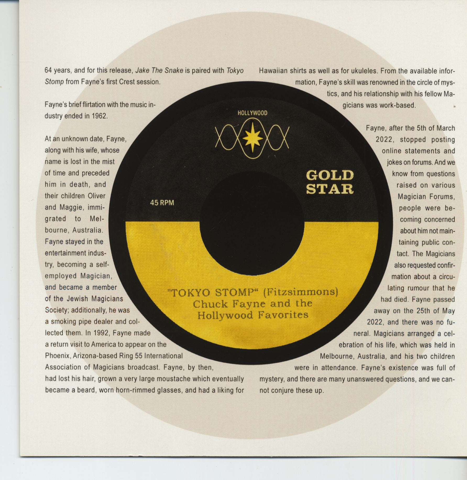 Propriétés de l'article:Chuck Fayne and the Hollywood Favorites: Jake The Snake - Tokio Stomp (7inch, 45rpm)