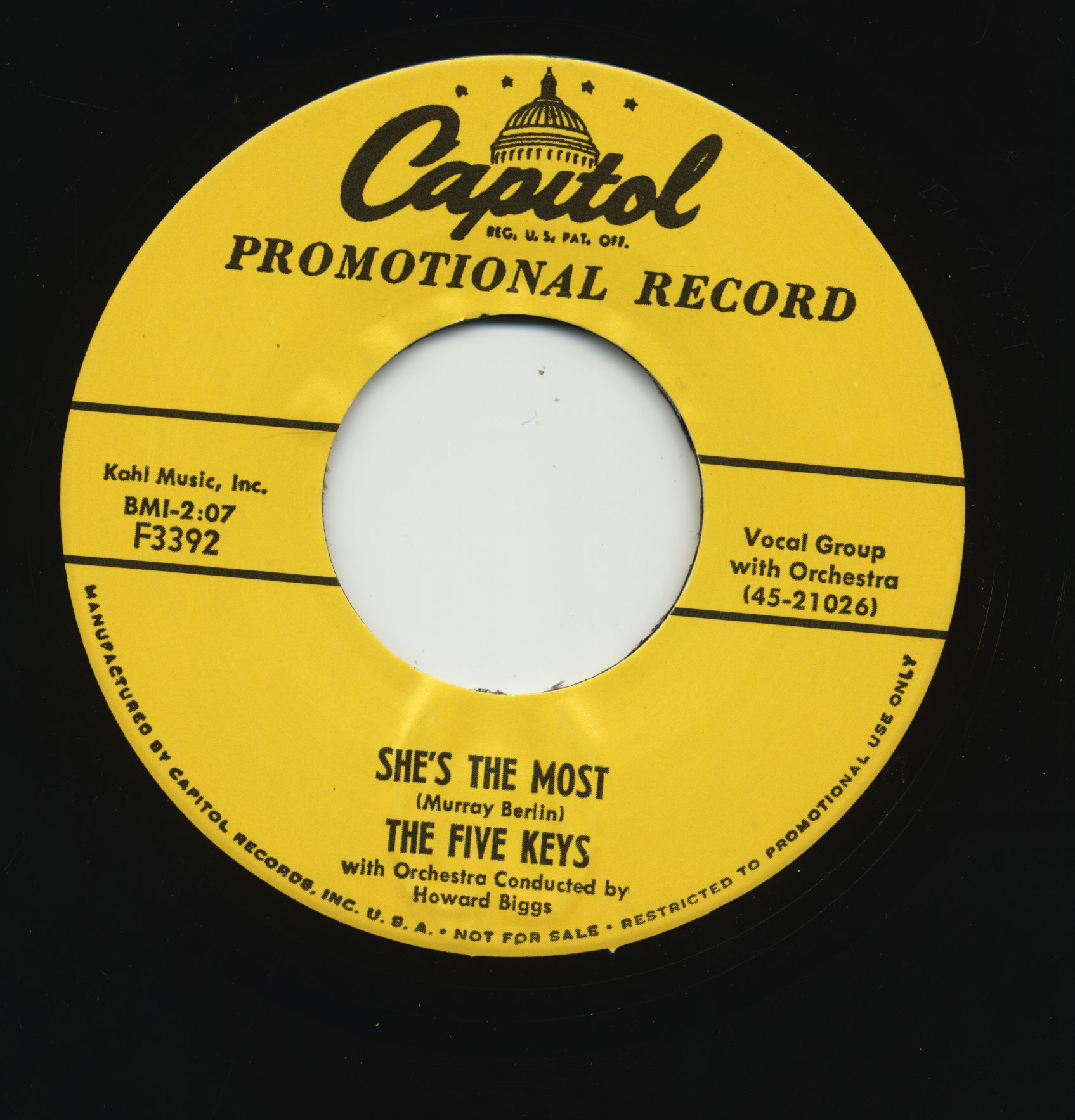 Ayant enregistré dans les studios new-yorkais de RCA pendant des années, ils obtiennent un contrat avec Groove Records grâce aux efforts de leur manager, Sol Richfield. Une session en juillet 1954 en résulte, avec quatre chansons enregistrées. Entre-temps, il semble que leur manager ait obtenu en coulisses un meilleur contrat avec Capitol Records, car Ling Ting Tong a été remplacé sur ce label en septembre. C'est aussi le first hit des FIVE KEYS pour la compagnie, avec beaucoup d'autres qui suivront jusqu'en 1959...