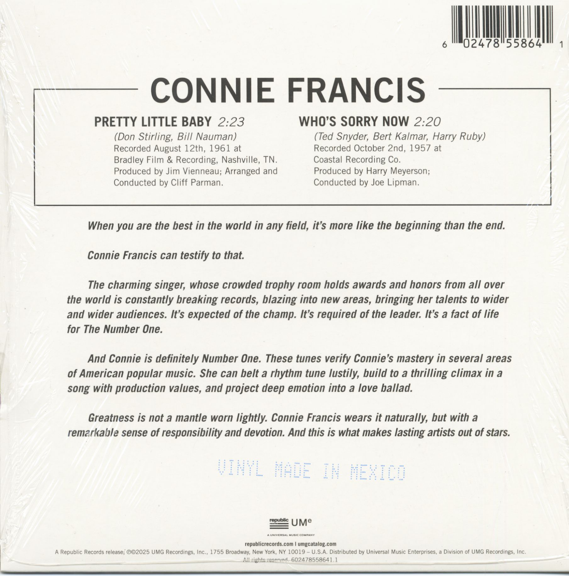 Connie Francis Pretty Little Bab y - Who's Sorry Now (7inch, 45rpm, colored Vinyl)