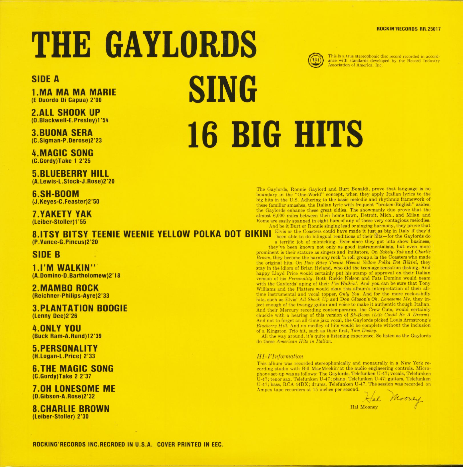 GAYLORDS 16 Big Hits (LP)