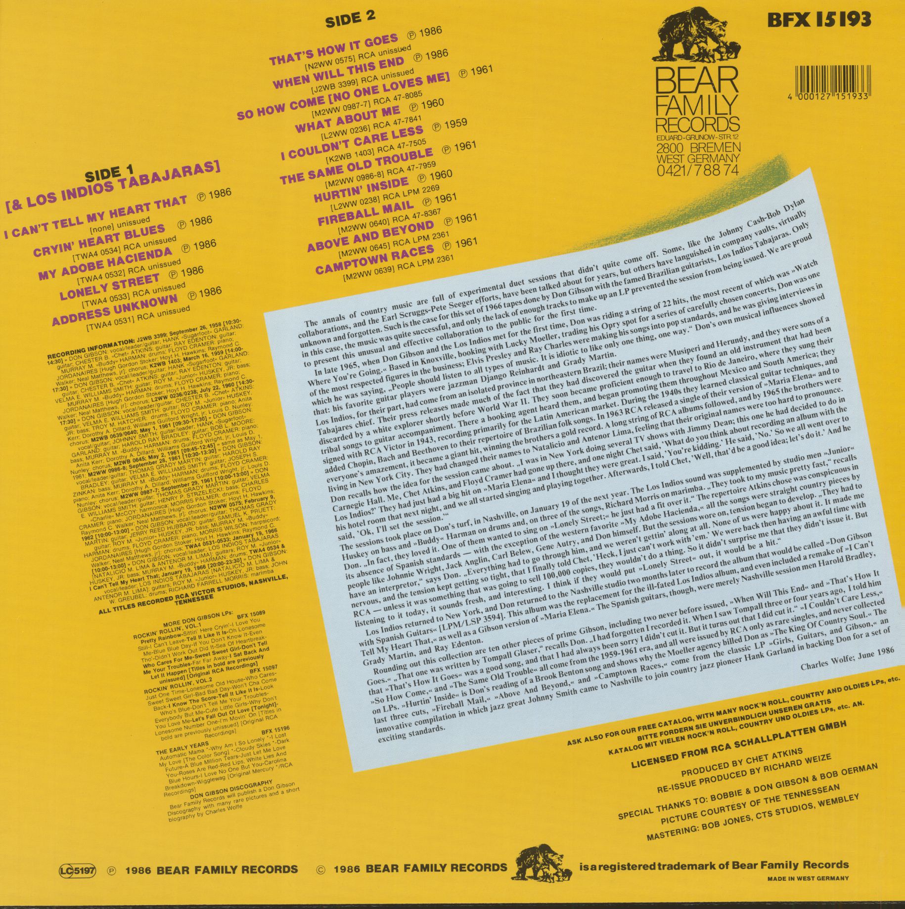 Don Gibson Don Gibson And Los Indios Tabajaras (Vinyl)