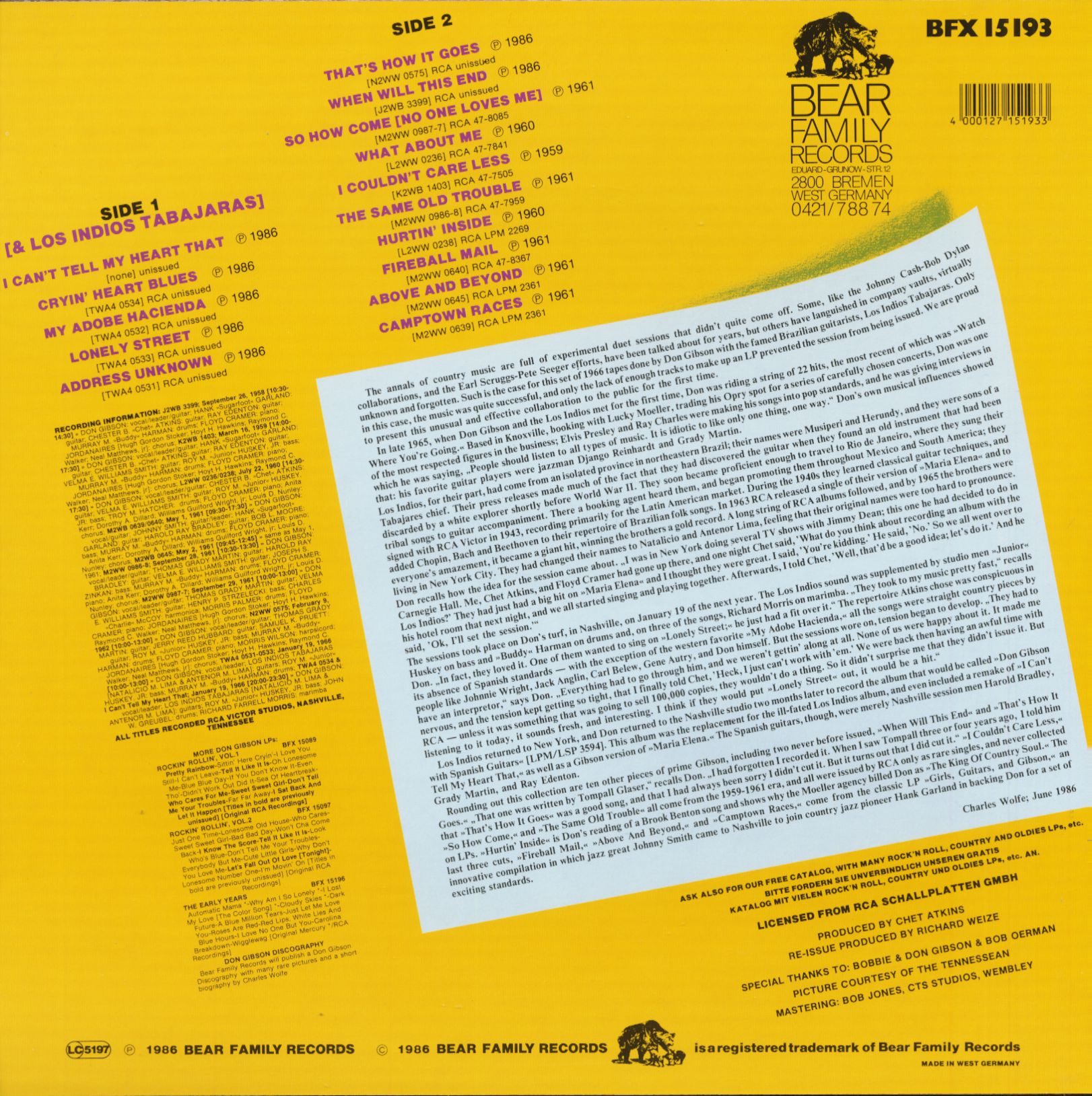 Don Gibson Don Gibson & Los Indios Tabajaras (LP)