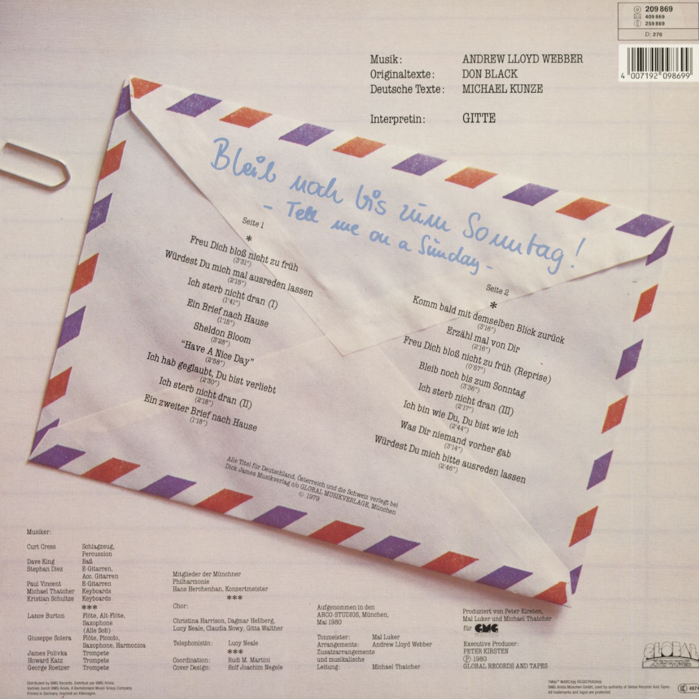 Gitte Haenning Bleib Noch Bis Zum Sonntag -Tell Me On A Sunday (LP, Cut-Out)