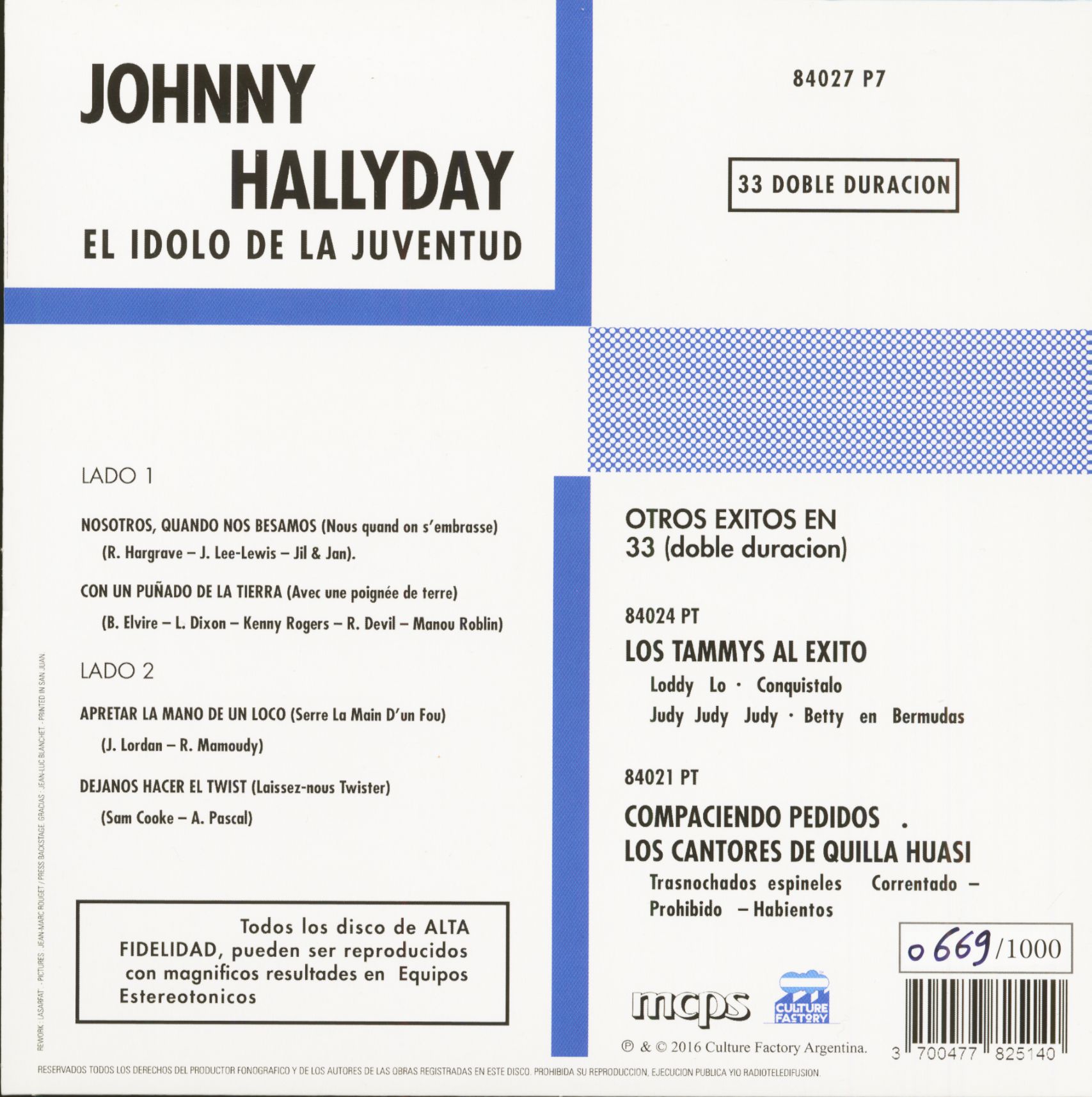 Johnny Hallyday El Idolo De La Juventud (7inch, EP, 45rpm, PS, SC, Clear Vinyl, Ltd.)