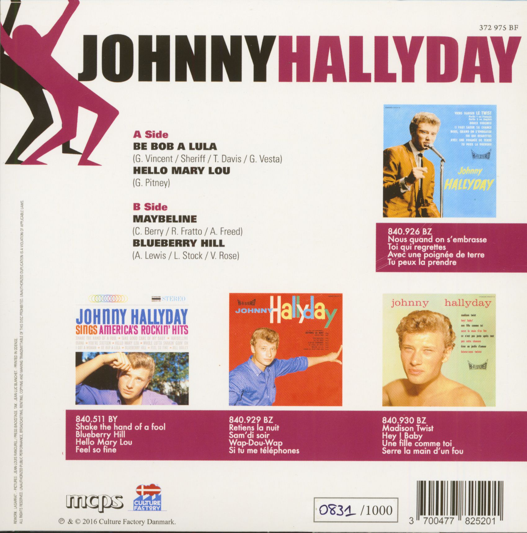 Johnny Hallyday Johnny Hallyday (7inch, EP, 45rpm, PS, SC, Purple Vinyl, Ltd.)