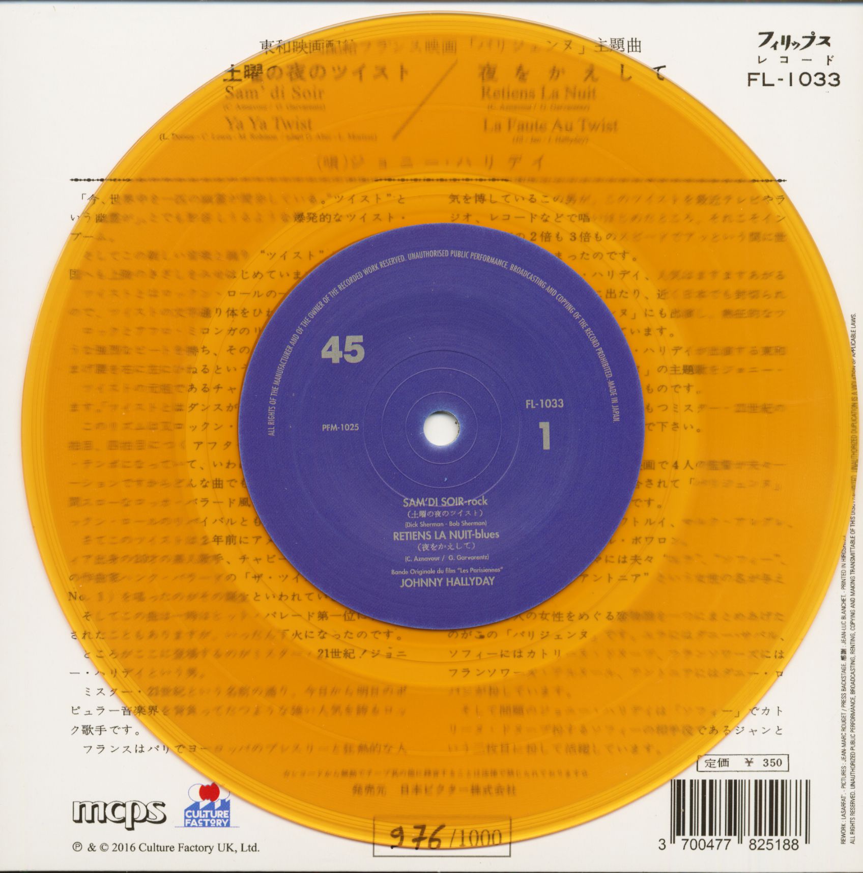 Johnny Hallyday Sam'di Soir - Retiens La Nuit (7inch, EP, 45rpm, PS, SC, Orange Vinyl, Ltd.)