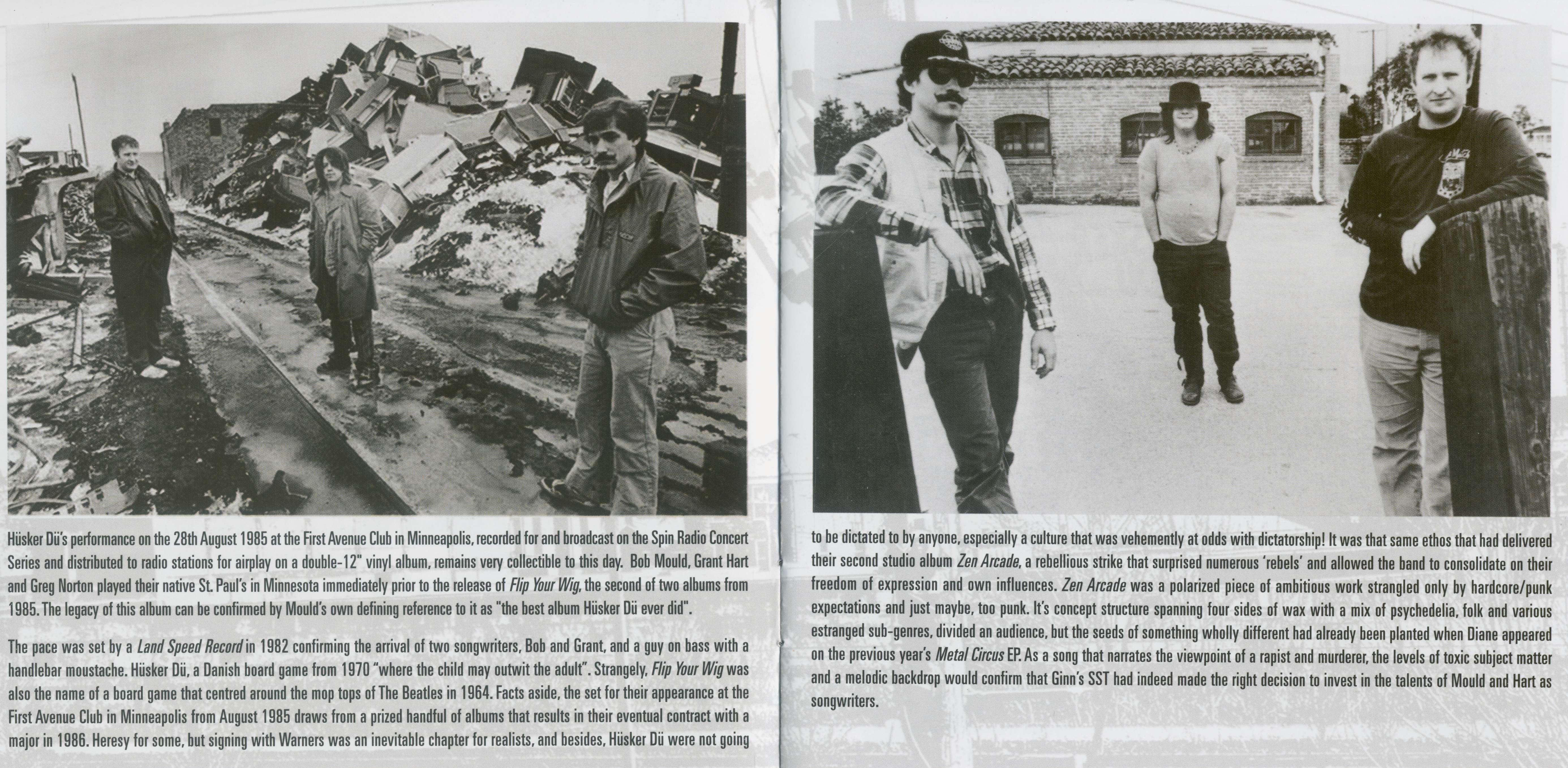 La performance de Hüsker Dü le 28 août 1985 au First Avenue Club de Minneapolis, enregistrée et diffusée dans le cadre de la Spin Radio Concert Series et distribuée aux stations de radio pour diffusion sur un double album vinyle de 12 pouces, reste à ce jour très appréciée. Bob Mould, Grant Hart et Greg Norton ont joué leur St. Paul's natal au Minnesota juste avant la sortie de Flip Your Wig, le deuxième de deux albums de 1985. L'héritage de cet album peut être confirmé par le fait que Mould l'a qualifié de "meilleur album que Hüsker Dü ait jamais fait". En 1982, un Land Speed Record confirme l'arrivée de deux auteurs-compositeurs, Bob et Grant, et d'un type à la basse avec une moustache sur le guidon.