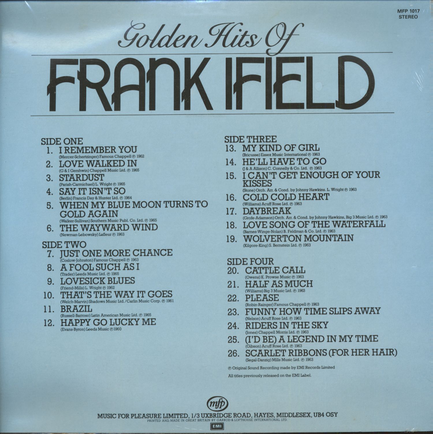 | 02 | Love Walked In | Frank Ifield |