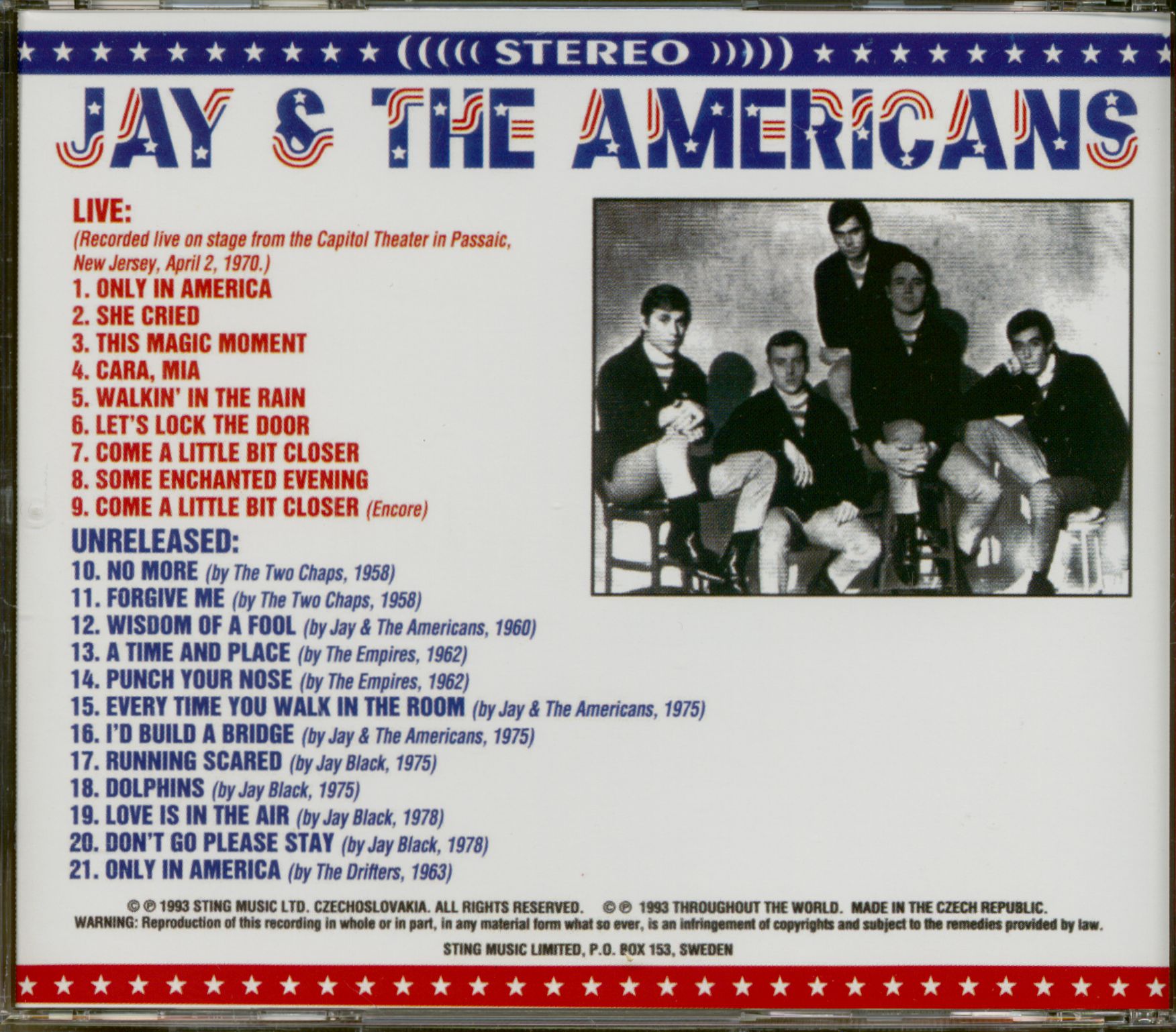 | Jay & The Americans - Live & Unreleased (CD) CD 1 | ||||