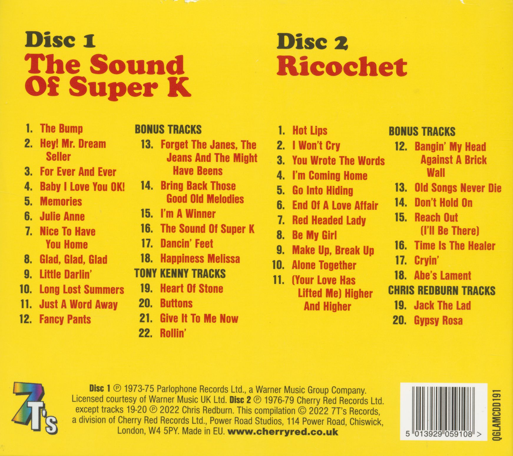 | Kenny - The Albums - The Sound Of Super K - Ricochet (2-CD) CD 2 | ||||