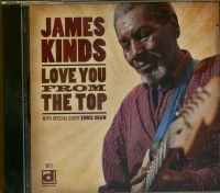 Yet he's never had a nationally distributed album properly spotlighting those golden pipes until this one. Love You From The Top, cut at Delmark's in-house studios, is sure to open a lot of eyes as to what Kinds can do vocally. "I really was wanting to be on the Delmark label:' says James. Eddie Shaw's lusty tenor sax adds to the steamy West Side ambiance on several tracks, just as he did on Magic Sam's classic Delmark album Black Magic more than four decades ago. "Eddie goes way back for me:' says Kinds. "He was one of my mentors:' The prolific Kinds displays a predilection for using ladies' names as song titles ("Peggy Sue," "Katie," "Johnny Mae"), while the set's hard-driving title track stems from personal romantic experience. it was a friend of mine that I was singing about:' he confides.