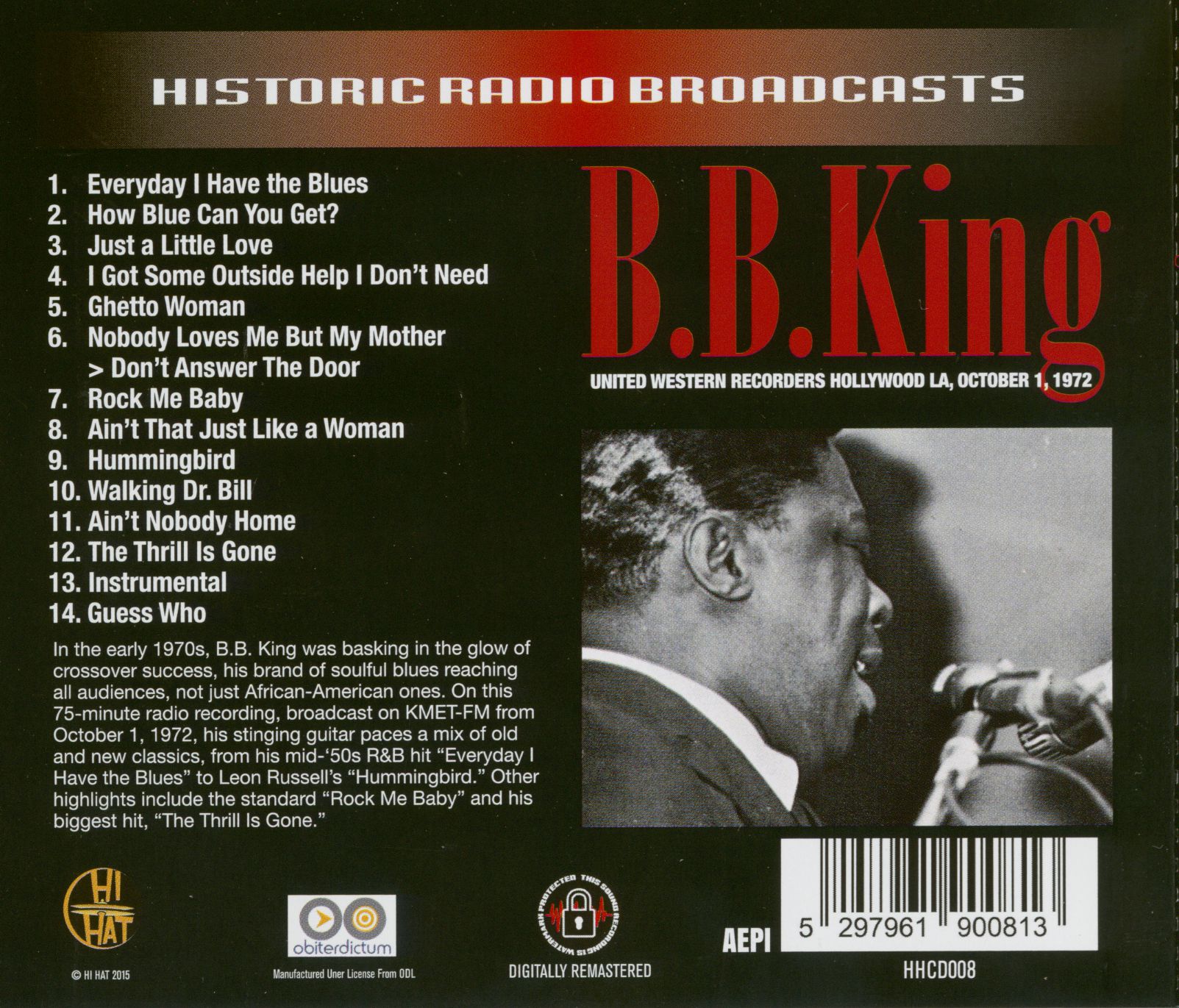 B.B. King United Western Recorders Hollywood LA, October 1, 1972 (CD)