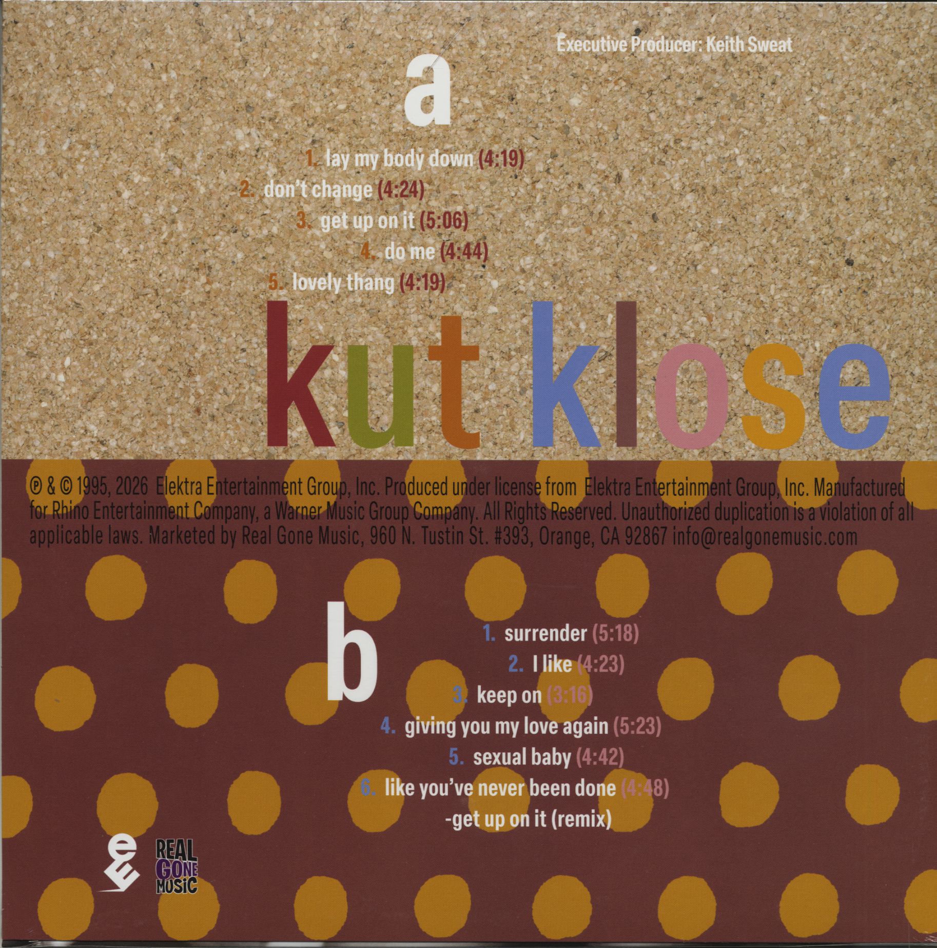 C'est Keith Sweat qui a découvert ce trio entièrement féminin (Athena Cage, Lavonn Battle et Tabitha Duncan) originaire d'Atlanta, mais Kut Klose avait bien plus à offrir que le simple statut de protégées d'une superstar. Leur seul album, « Surrender », sorti en 1995, est devenu un véritable classique culte, sans doute en partie parce que des morceaux comme « Get Up on It » et « Sexual Baby » sont tout simplement incroyablement sexy. Mais la production est également de premier ordre : l’équipe de H.O.P. Productions — Eric McCaine et Fitzgerald Scott — a collaboré avec Sweat pour créer ces rythmes sensuels. « I Like » a été le tube, mais l’album tout entier dégage cette ambiance « passons la nuit à la maison ». « Surrender », qui n’est jamais sorti en vinyle aux États-Unis, est proposé dans un pressage remasterisé sur vinyle bleu clair avec une pochette intérieure imprimée. Très recherché par les collectionneurs de R&B !