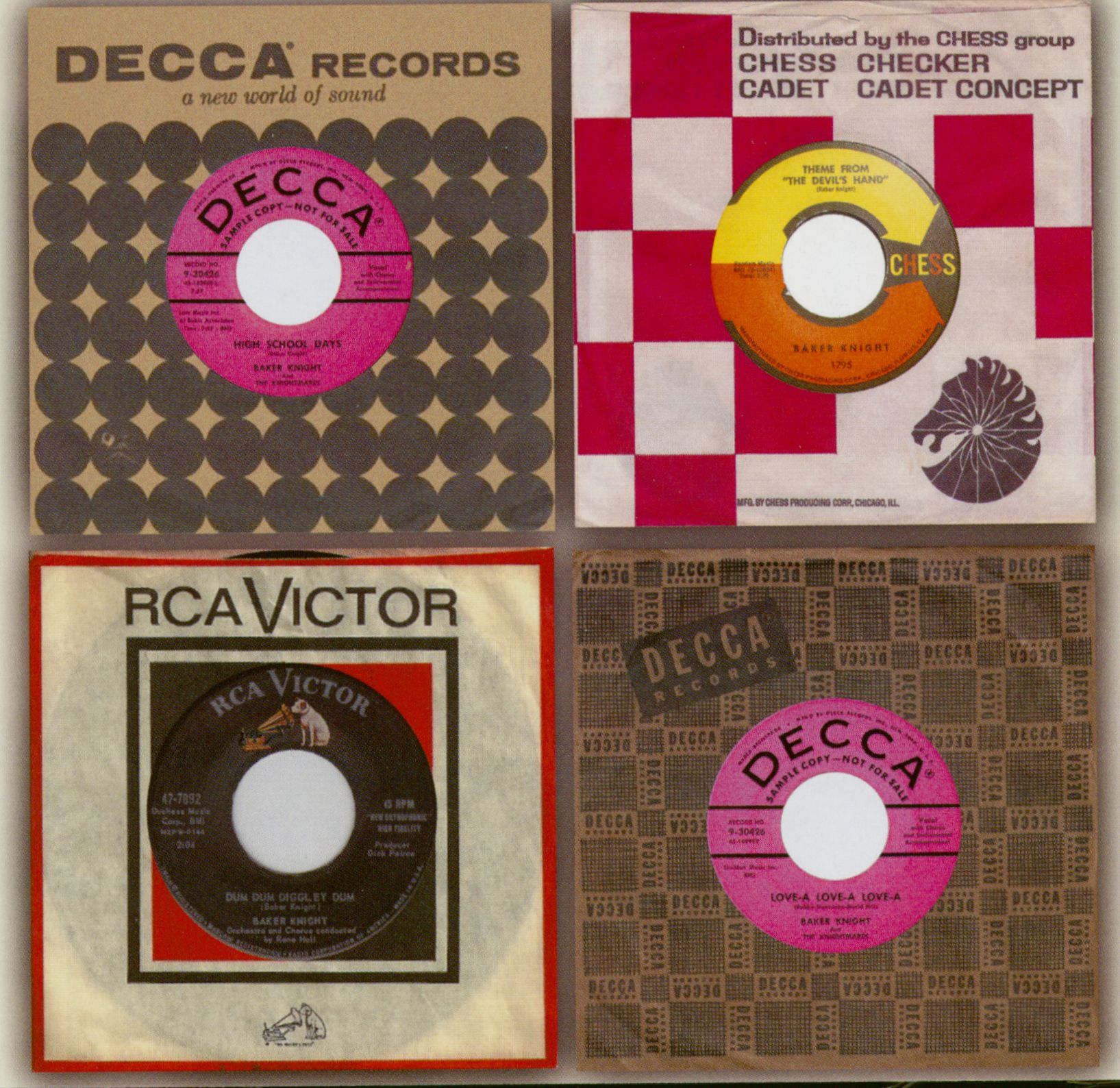 Baker Knight was one of the most successful and celebrated songwriters of the 50s, 60s and 70s, enjoying success in the rock & roll, pop and country markets. His songs were famously recorded by Ricky Nelson (including six million-sellers), Elvis Presley, Jerry Lee Lewis, Eddie Cochran, Dean Martin, Hank Williams Jr., Frank Sinatra, Nancy Sinatra, Sammy Davis Jr., Perry Como, Mickey Gilley, Eddy Arnold, Paul McCartney, and many more. He also enjoyed a parallel career as a rock & roll singer, recording variously for Kit, Decca, Jubilee, Coral, Kick, RCA-Victor, Chess and Checker. Astonishingly, none of his own releases were commercial successes, and they are all nowadays highly sought-after collectors' artefacts.