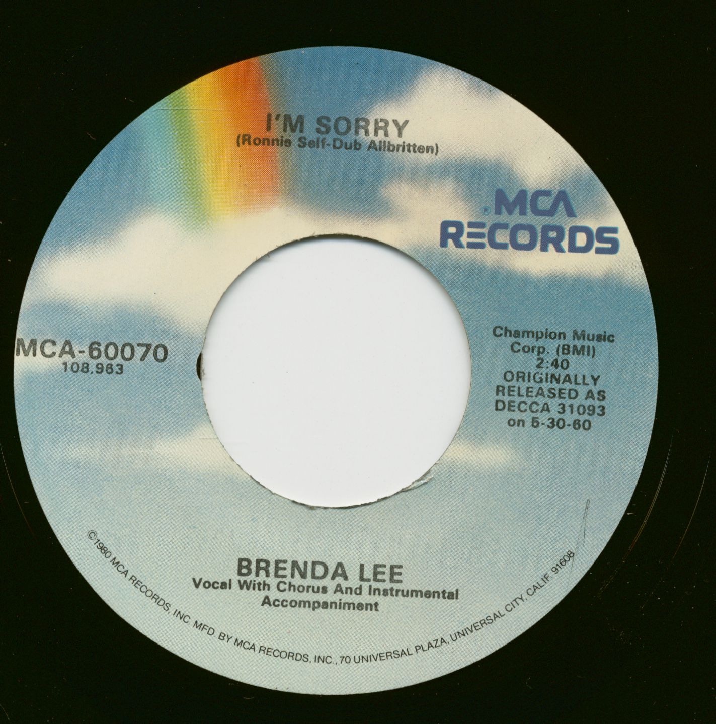 Brenda Lee I'm Sorry - All Alone Am I (7inch, 45rpm)