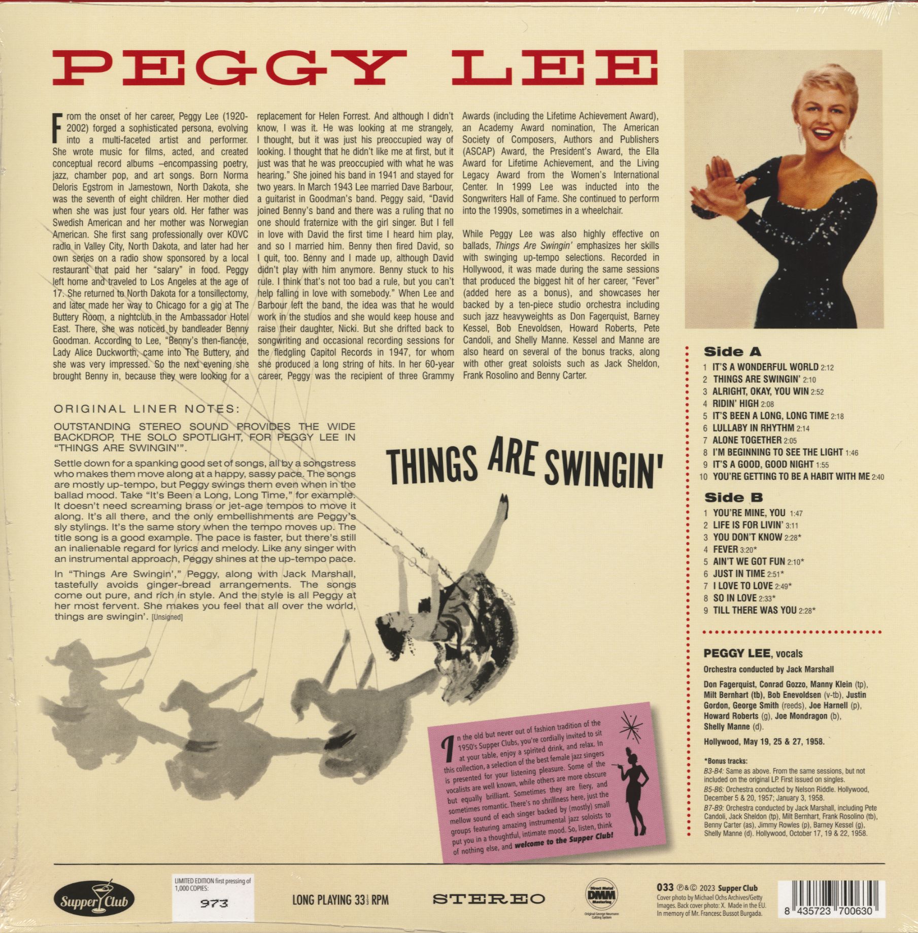 Propriétés de l'article: Peggy Lee: Things Are Swingin' (LP, 180g Vinyl, Bonus Tracks, Ltd.)