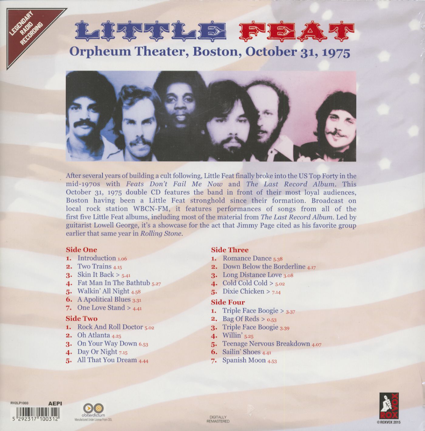 Little Feat Orpheum Theter, Boston, MA, 1975 (2-LP, 180g Vinyl)