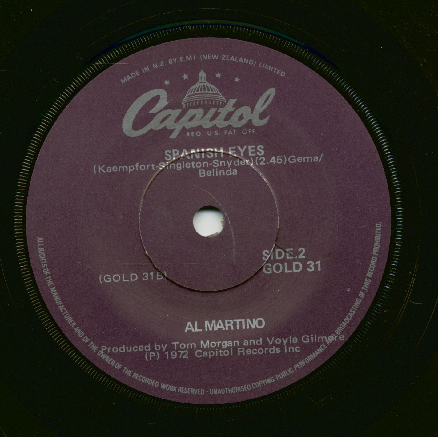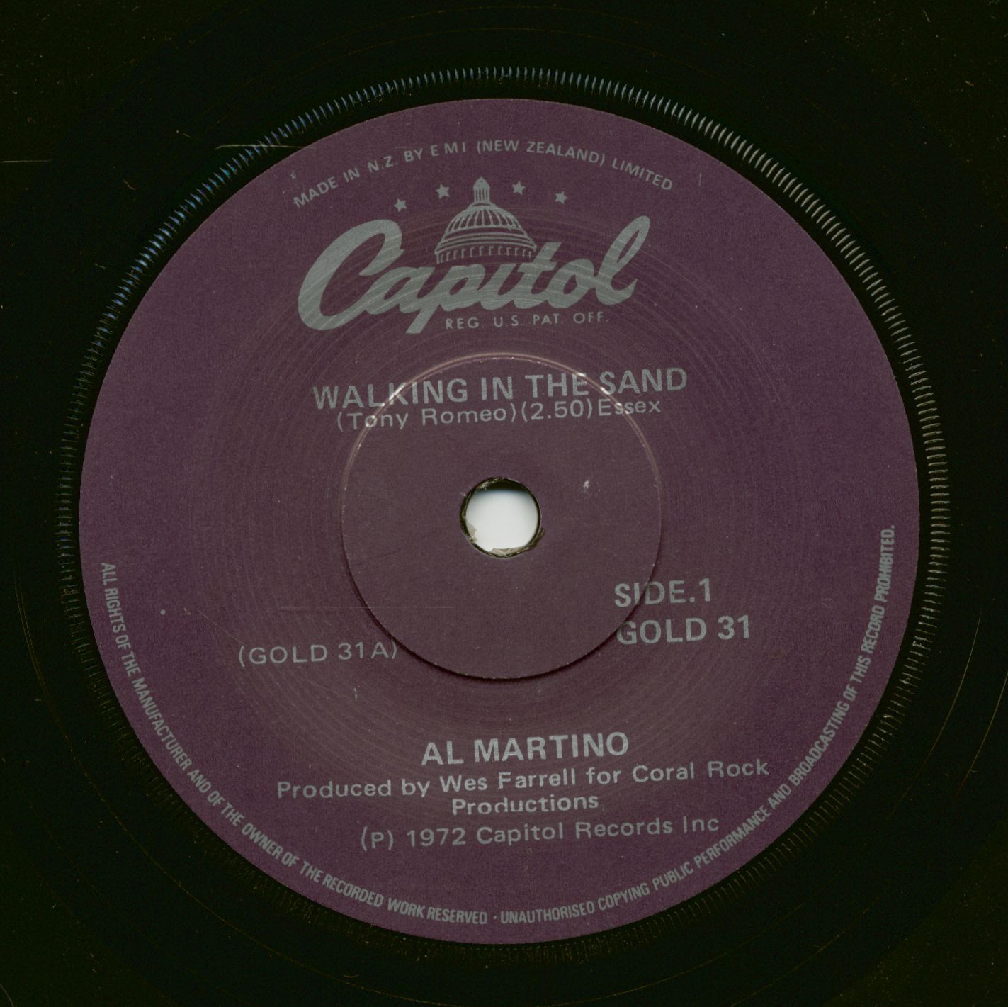 Al Martino Walking In The Sand - Spanish Eyes (7inch, 45rpm, SC)