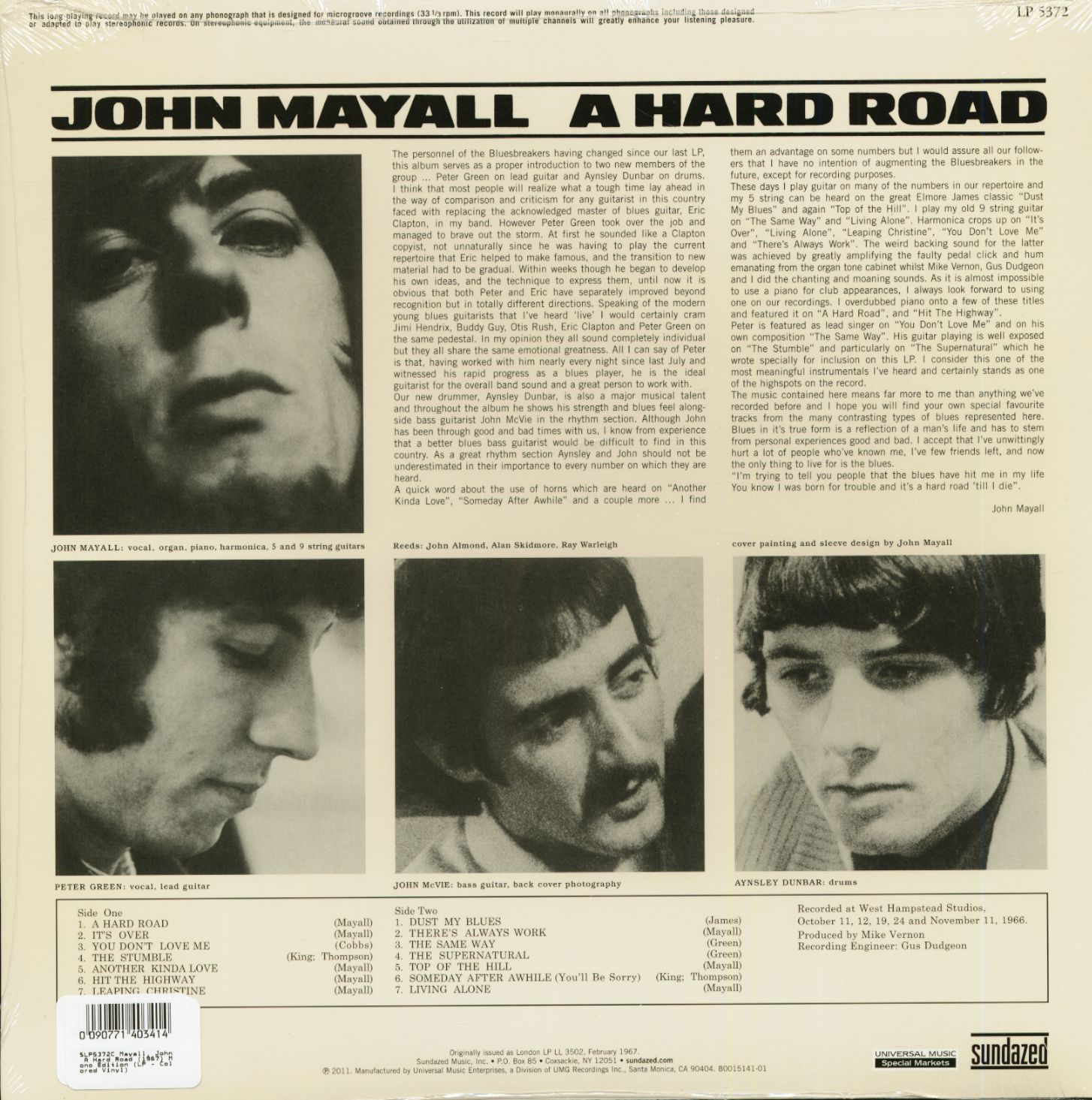 John Mayall A Hard Road (1967) Mono Edition (LP - Colored Vinyl)
