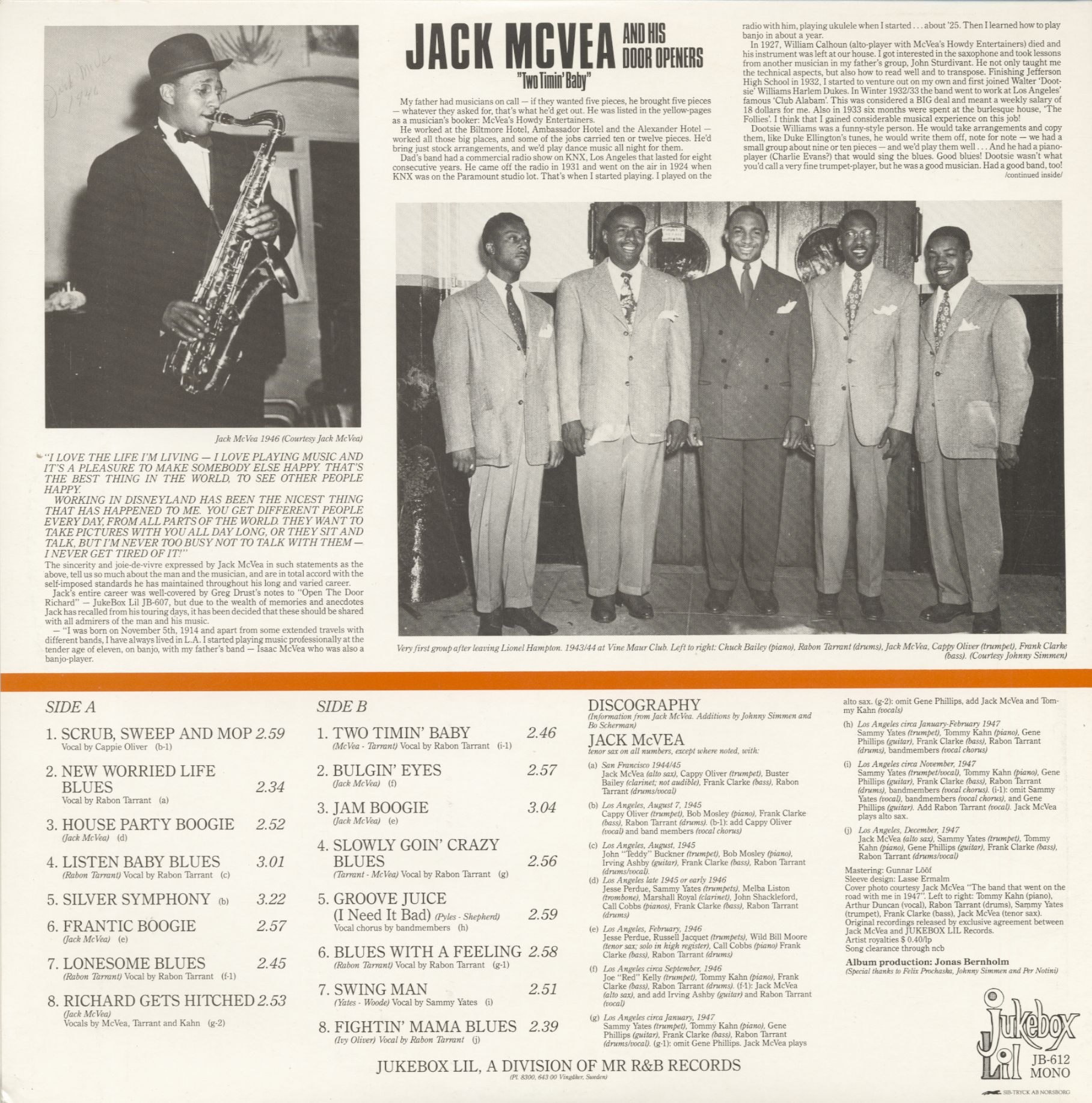 Jack McVea Two Timin' Baby (LP)