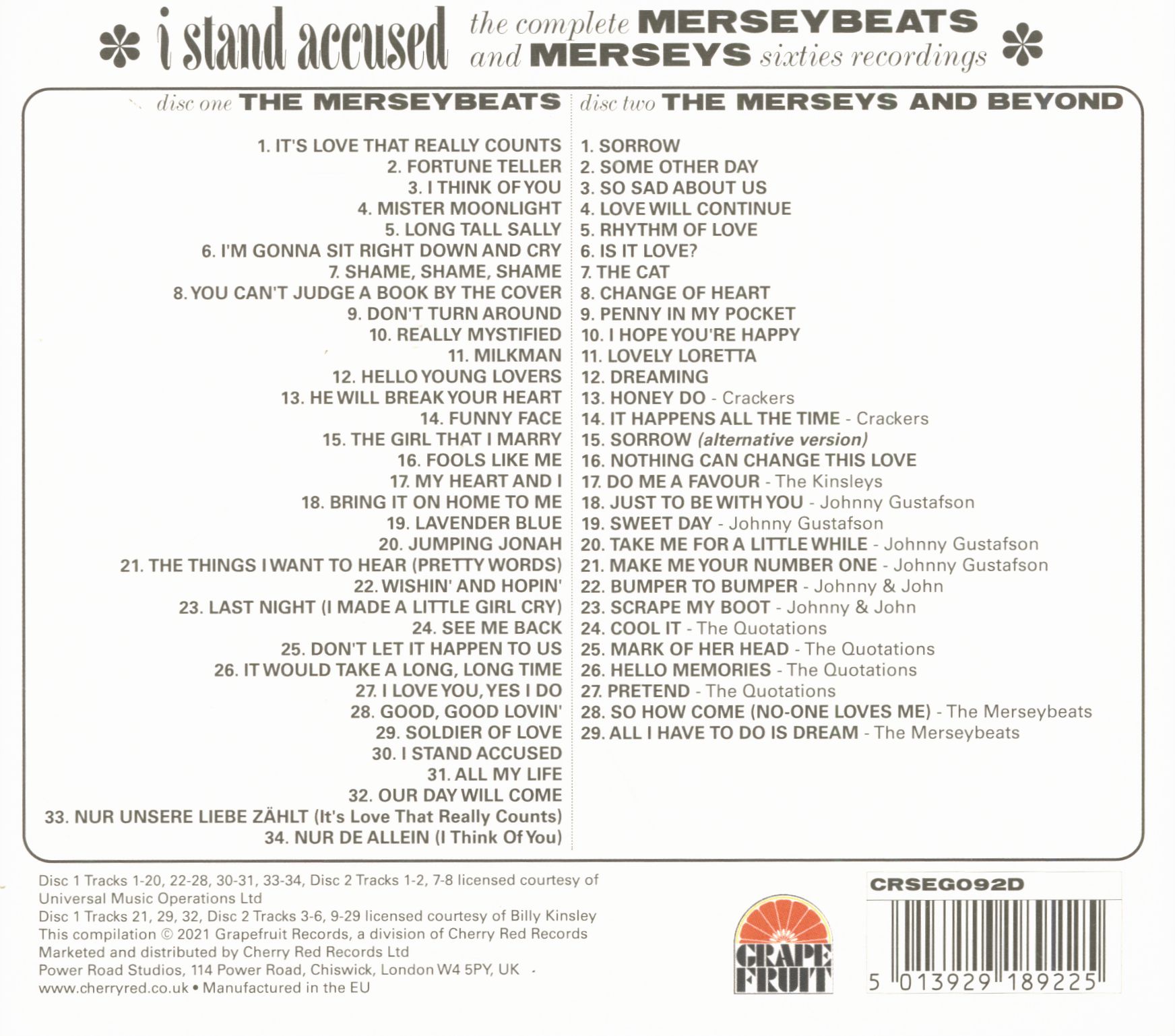 Titre de l'album: I Stand Accused - The Complete Merseybeats And Merseys Sixties Recordings (2-CD)