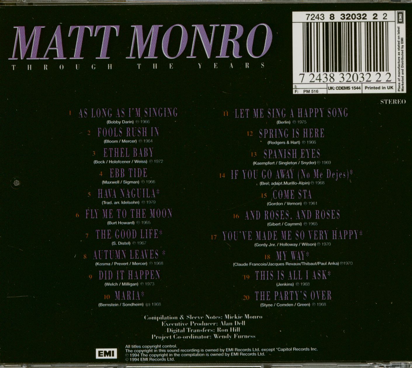 Matt Monro Through The Years (CD)