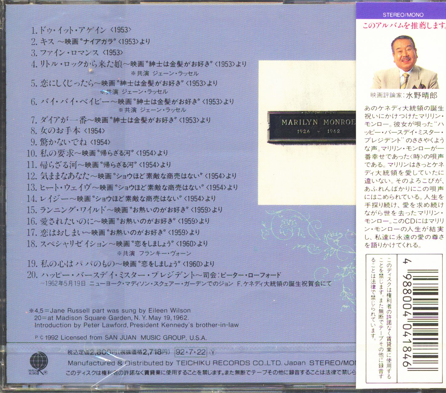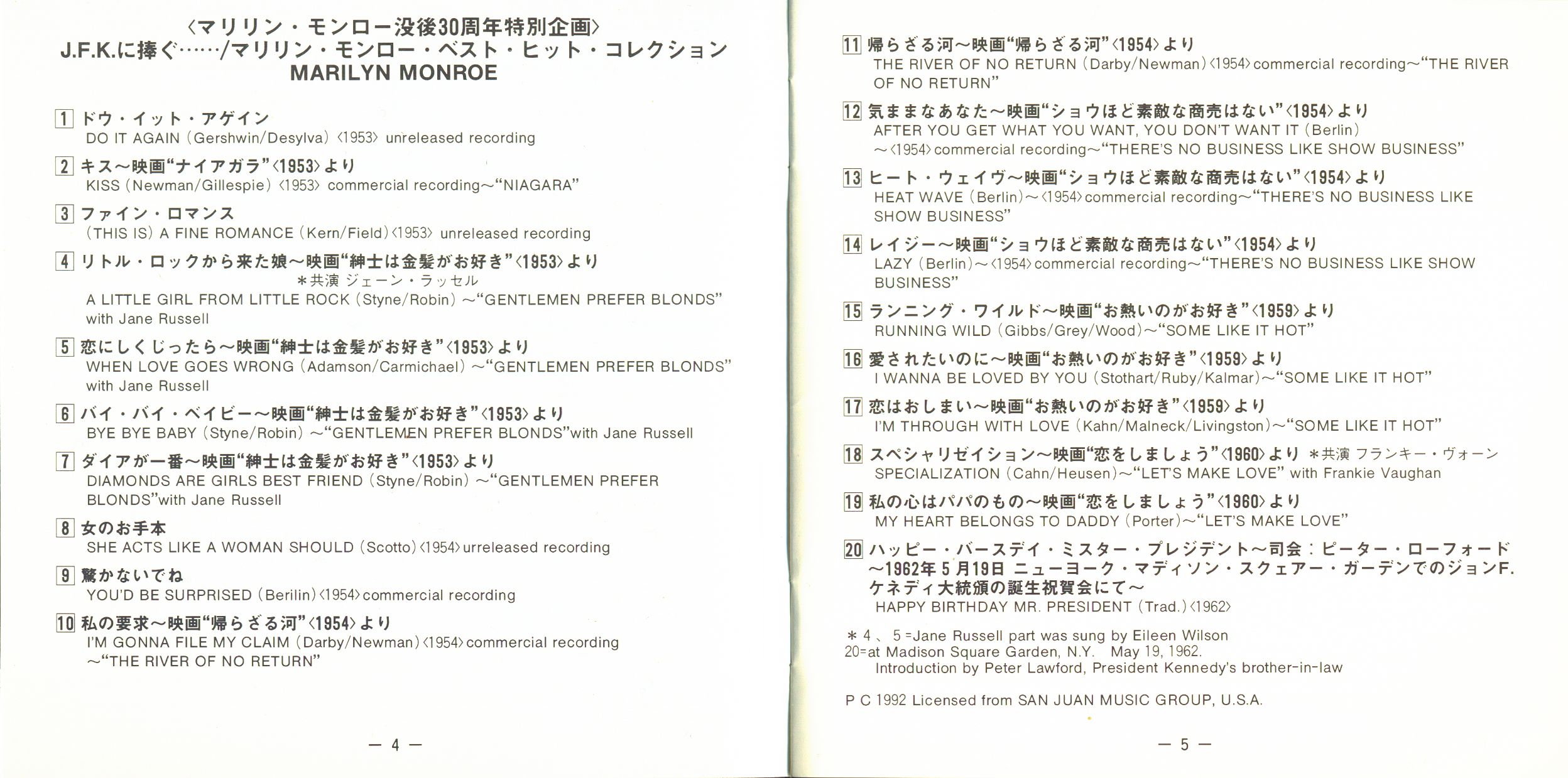 Marilyn Monroe J.F.K. To Dedicate - Best Hit Collection (CD, Japan)