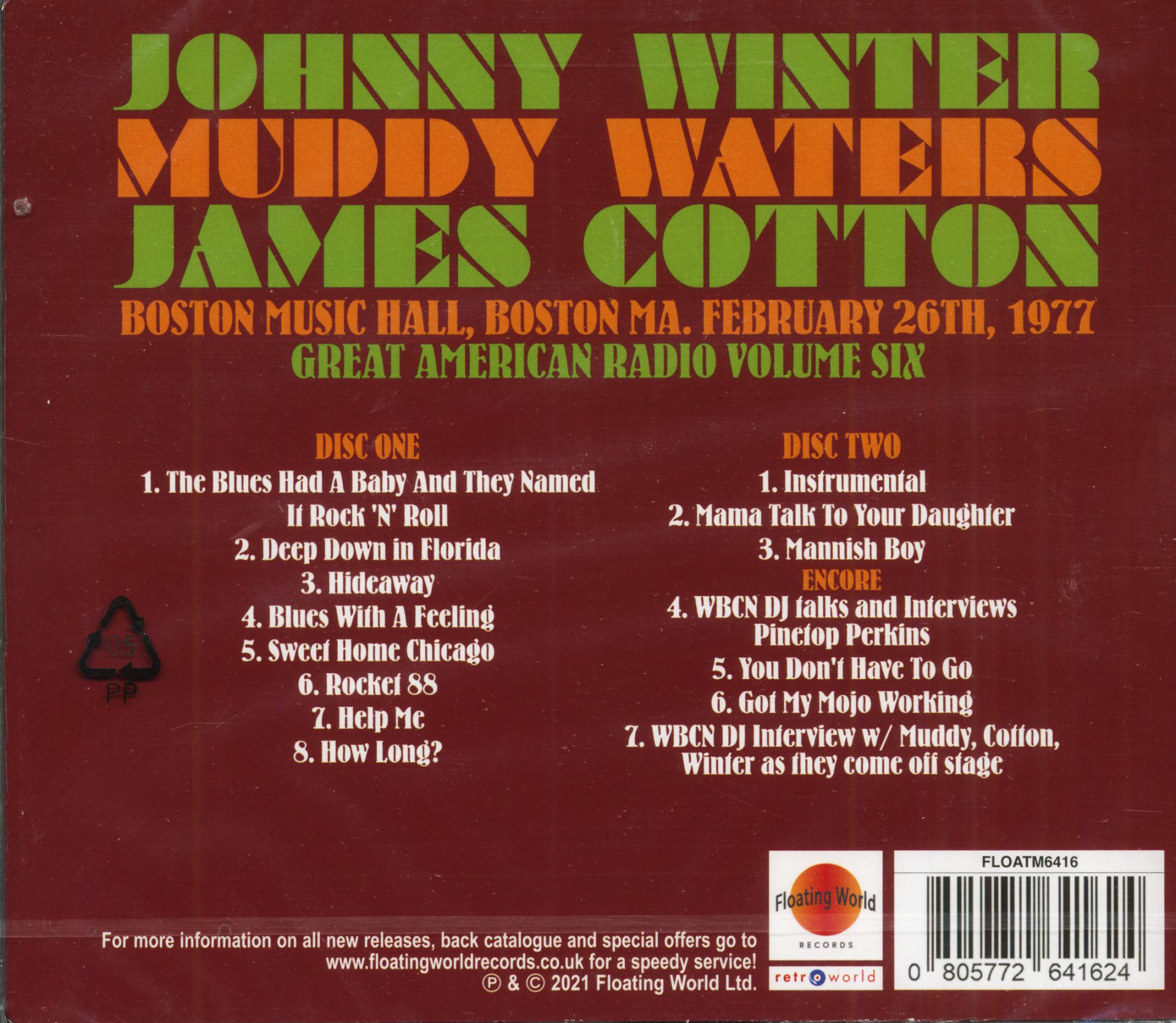 Ce double CD peu coûteux est un enregistrement de concert de Johnny Winter pour la station de radio WBCN de Boston, et enregistré au Boston Music Hall, ? Boston, Massachusetts, le 26 février 1977.